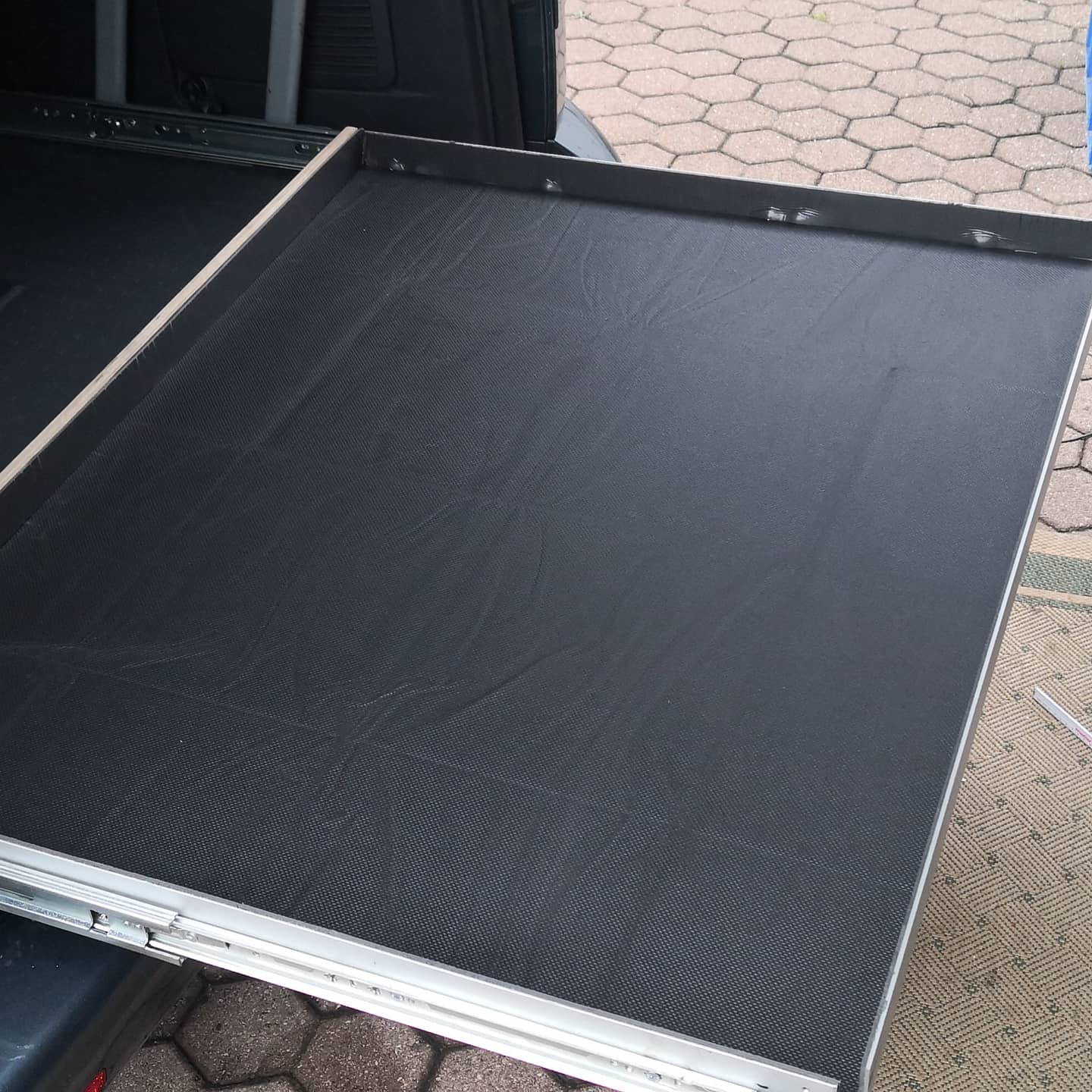 Ausgang ein normaler T5 Multi, Multiflexboard, Heckauszug 800mm Eigenbau, ND Rack Dachträger mit Fiamma F35 pro, 225/70 16 All Terrain, PowerBox und Solatpanel