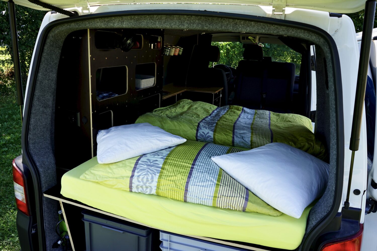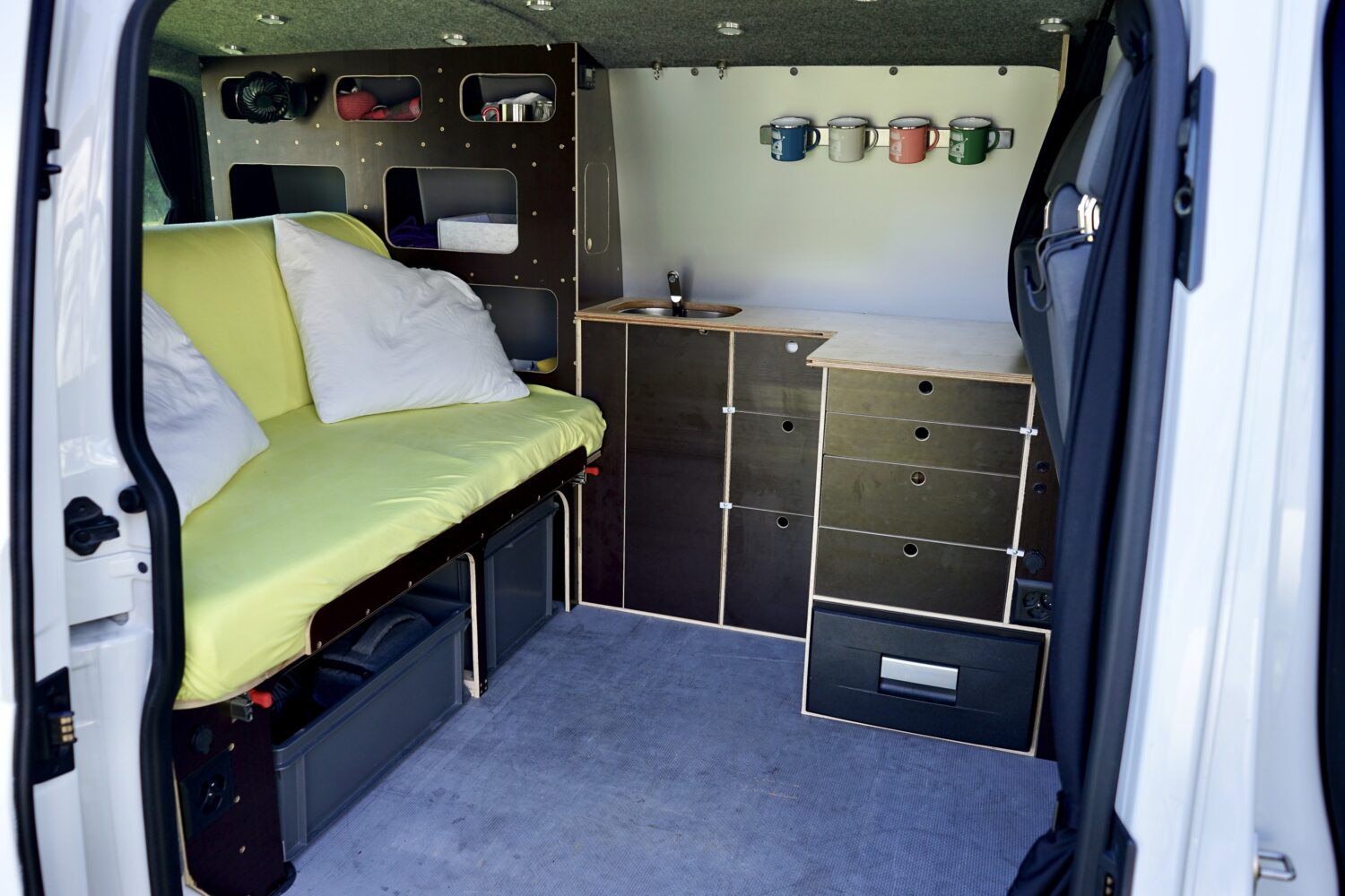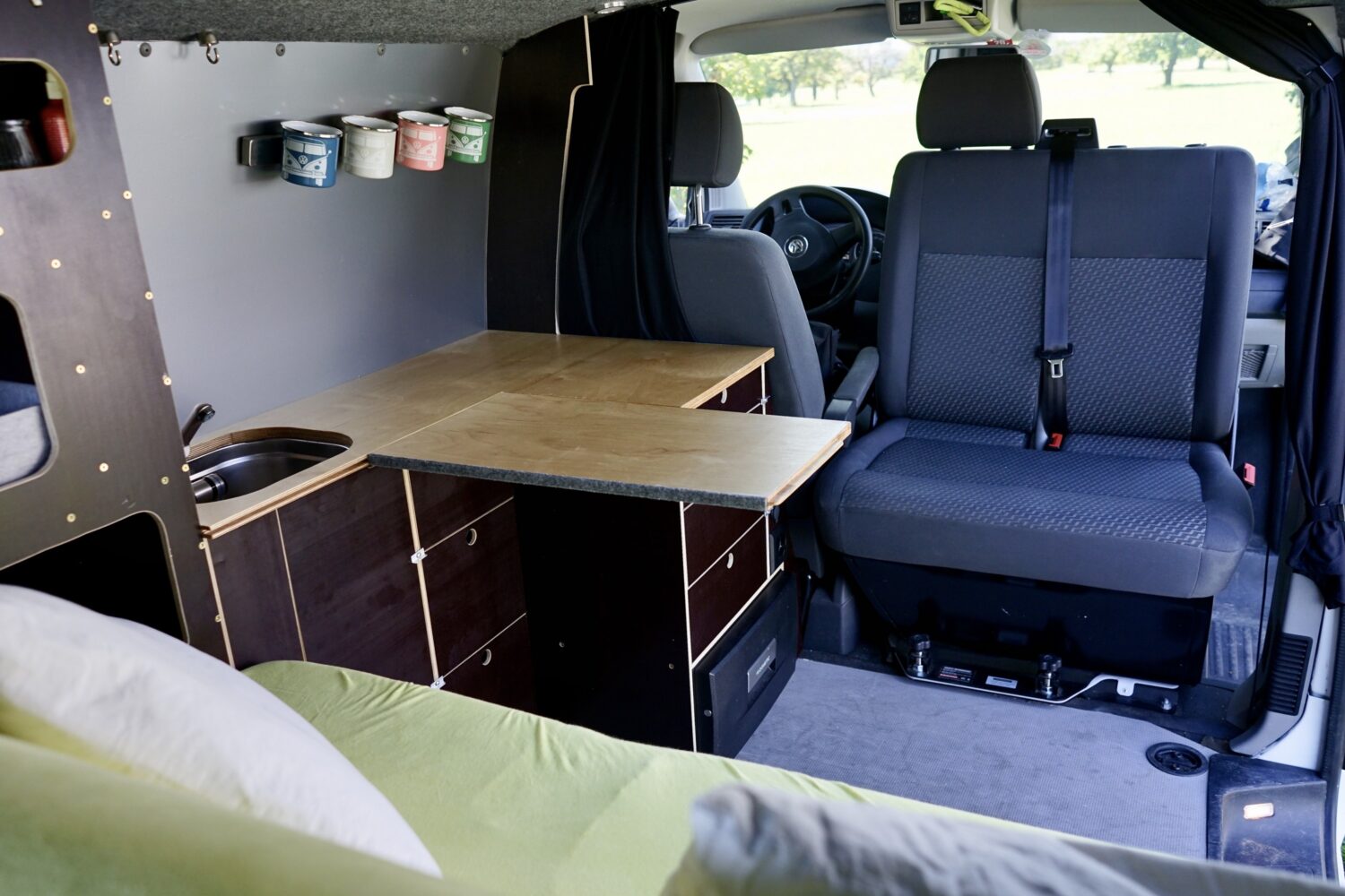 Als ich ihn 2019 gekauft habe war er ein leerer Transporter. Jetzt ist Albus perfekt ausgestattet für Camp'n'Glide zu zweit aber trotzdem auf den Strassen inkognito um einfach überall schlafen zu können. Besondere Highlights: Schlaf- / Sitzbank auf Schwerlastauszügen Geiles 3in1 Tischsystem Sonstiges: Air2D Standheizung 2. Batterie mit Ladebooster, Landstrom und Solar Wasser, Spülbecken und Badezimmerschrank Drehbare Doppelsitzbank Besonders stolz bin ich, dass ich den kompletten Ausbau mit Strom und Standheizung allein hinbekommen hab. Weiter ausbauen will ich noch einen Heckauszug und ein Ablagefach über der Küchenzeile. Ganz fertig wird Albus wohl nie... Für weitere Tipps oder Ideen bitte einfach melden!