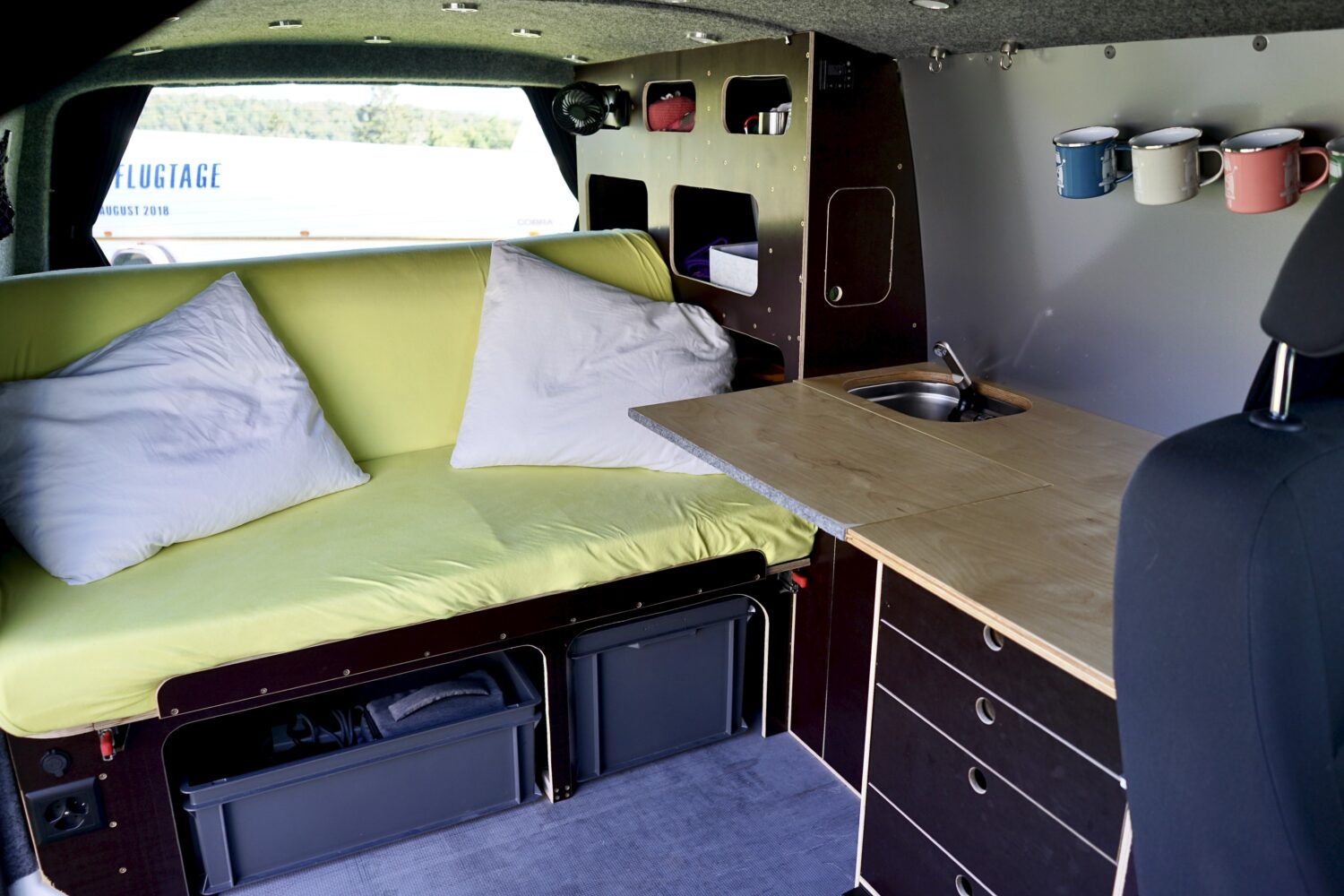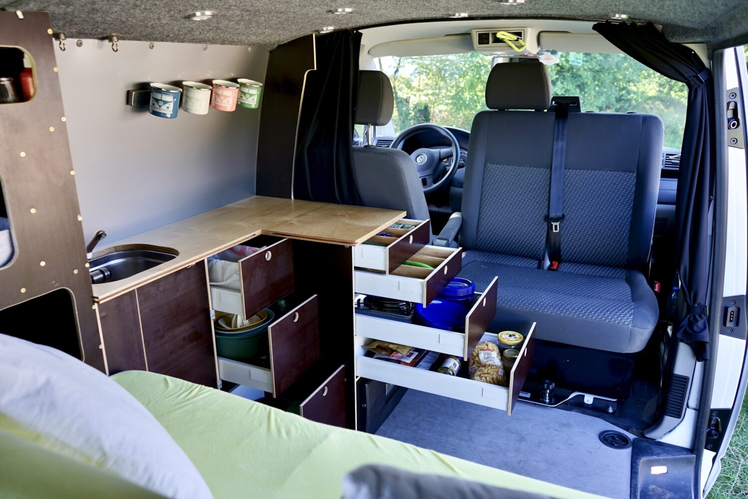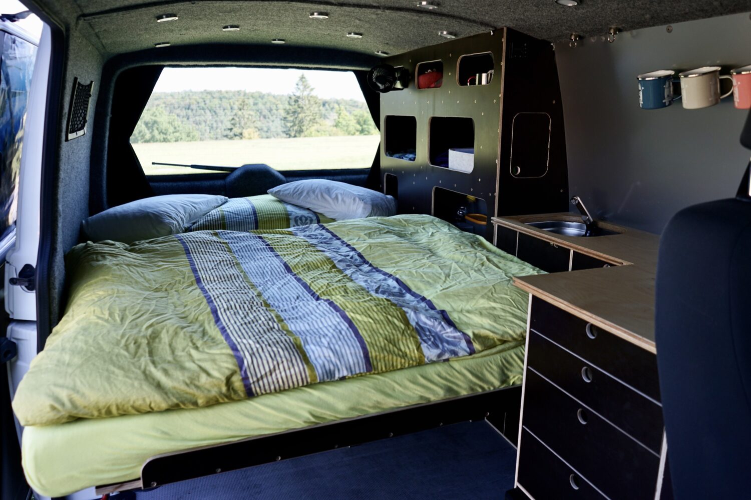 Als ich ihn 2019 gekauft habe war er ein leerer Transporter. Jetzt ist Albus perfekt ausgestattet für Camp'n'Glide zu zweit aber trotzdem auf den Strassen inkognito um einfach überall schlafen zu können. Besondere Highlights: Schlaf- / Sitzbank auf Schwerlastauszügen Geiles 3in1 Tischsystem Sonstiges: Air2D Standheizung 2. Batterie mit Ladebooster, Landstrom und Solar Wasser, Spülbecken und Badezimmerschrank Drehbare Doppelsitzbank Besonders stolz bin ich, dass ich den kompletten Ausbau mit Strom und Standheizung allein hinbekommen hab. Weiter ausbauen will ich noch einen Heckauszug und ein Ablagefach über der Küchenzeile. Ganz fertig wird Albus wohl nie... Für weitere Tipps oder Ideen bitte einfach melden!