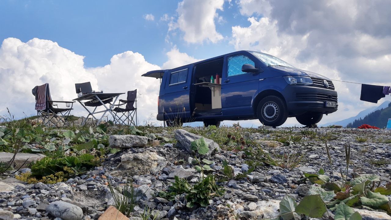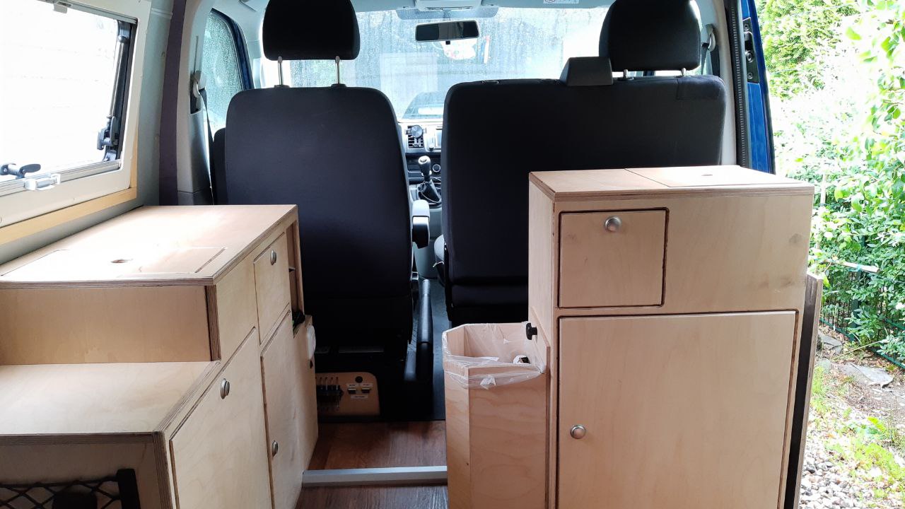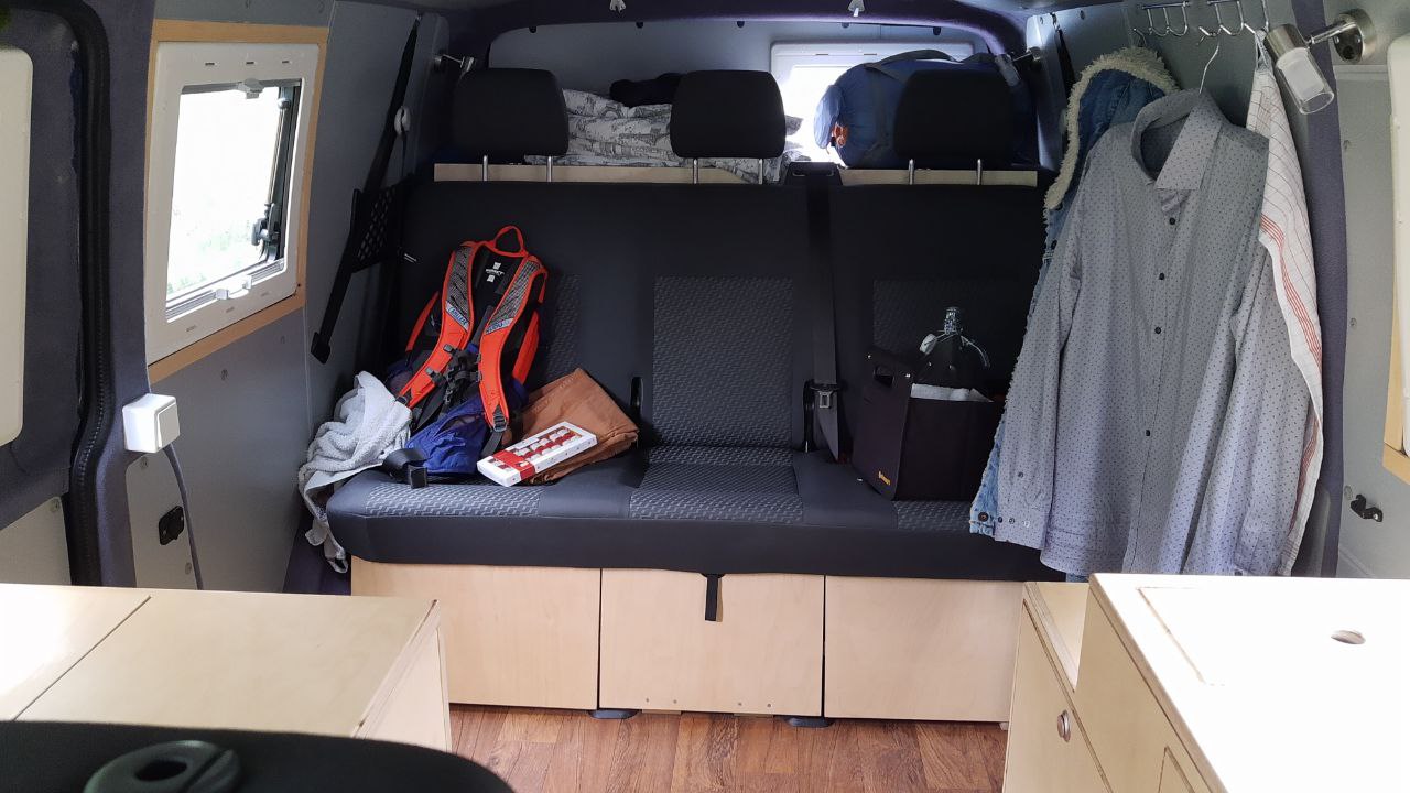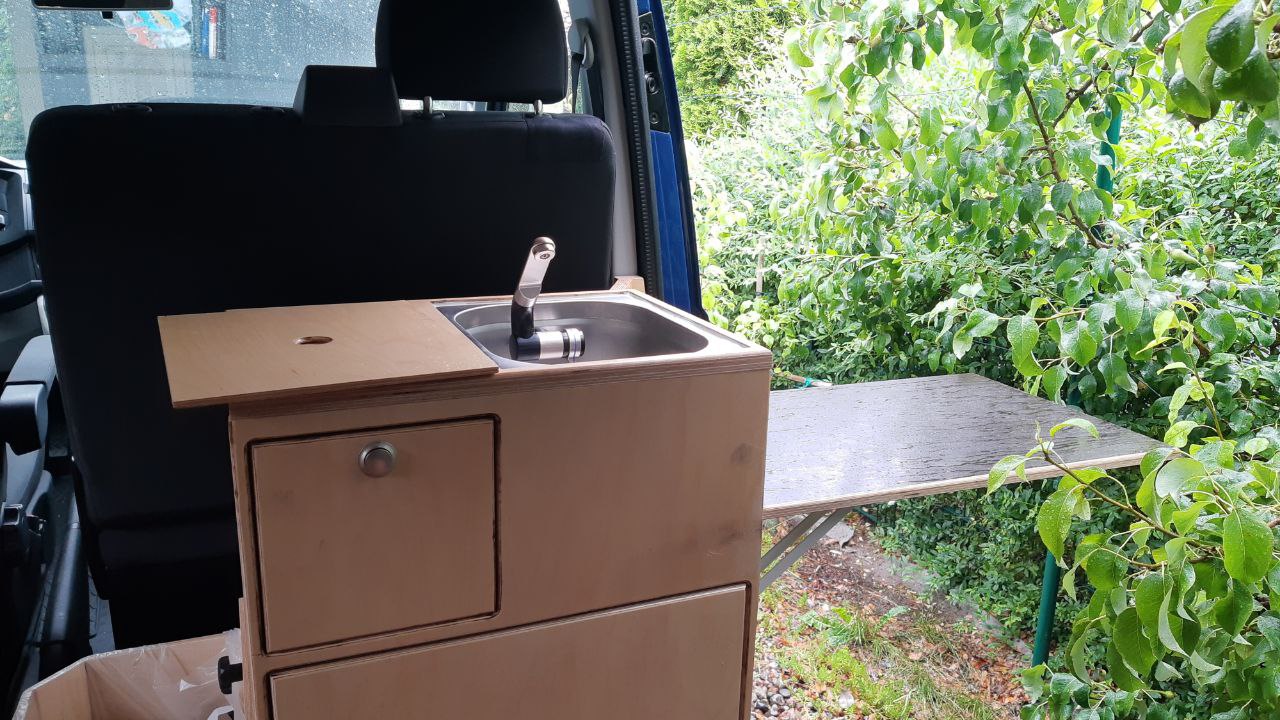 Der Bus war quasi mein Quarantäneprojekt, ich habe ihn mehr oder weniger Vollzeit im April und Mai diesen Jahres (2020) von der Fensterlosen Blechkiste zum Campingbus ausgebaut. Wichtig waren mir mindestens 5 Sitzplätze, daher wurde eine Caravelle-Sitzbank eingebaut und so angepasst, dass durch Umklappen das Bett entsteht. Auch wenn der typische Westfalia Ausbau mit Schrankwand auf der Beifahrerseite irgendwie kultig und auch ausgereift ist, finde ich das nur begrenzt praktisch. Durch den langen Radstand konnte ich ein etwas anderes Layout wählen. Für mich sind die Kernvorteile so, dass ich die gesamte Breite des Busses fürs Bett nutzen kann (1,6x2,0m), und dass die Küche uneingeschränkt von außen nutzbar ist. Gerade wenn man sich die Hände waschen will ist es praktisch nicht in den Bus zu müssen. Besonders stolz bin ich auf die Außendusche, die ich mit dem großen Wassertank auch ca. 4 mal ohne nachtanken Nutzen kann. Noch ein paar Daten: - Gesamtpreis bisher: ~28.000€ (Basisfahrzeug ~17.300€) - Motor: 2.0 TDI - Frischwassertank im Heck: 63l; Abwassertank unterm Auto: 20l - Batterie: 2. Batterie mit Trennrelais bzw Ladebooster (105Ah)
