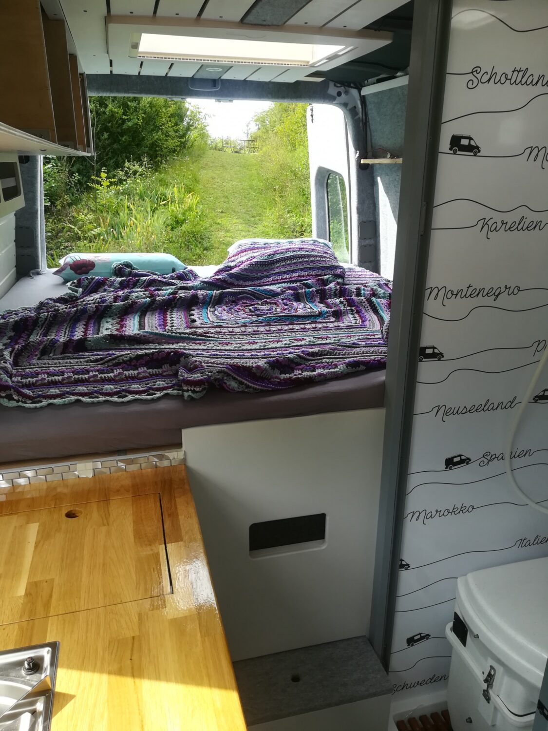 Wir sind Claudia und Richard und nach Fertigstellung unseres Selbstausbaus wollen wir über etwa zwei Jahre mehrere kleine Touren machen, dabei denken wir an Mazedonien, Marokko, Karelien, Karpaten. Wenn wir ab 2022 nicht mehr arbeiten, wollen wir uns den Pamir Highway und die Mongolei anschauen und alles, was auf dem Weg dorthin erreichbar ist. Wir gehören nicht zu denen, die alles filmisch dokumentieren und bei YouTube teilen, finden es aber klasse, dass so viele Gleichgesinnte sich dafür die Zeit nehmen. Die riesige Community in Deutschland und der Welt ist perfekt vernetzt, und davon können alle profitieren, der Austausch über Ausbau, Reisen, Erlebnisse, Erfahrungen ist doch das Salz in der Suppe. Hier erstmal ein Foto von unserem Essplatz, noch ohne Tisch, weitere folgen.