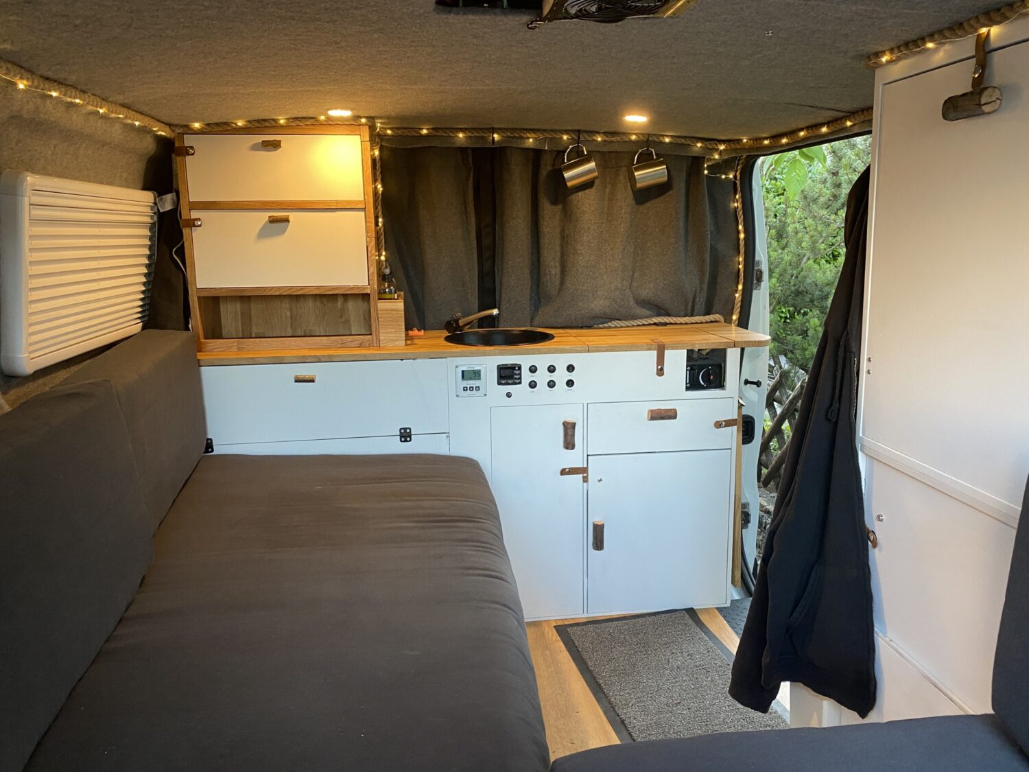Der Ausbau hat ungefähr ein halbes Jahr gedauert. Wobei ich im Winter als Straßenrandausbauer nicht so viel machen konnte. Hab alles selbst gemacht, außer dem Anschluss der Planar an den Dieseltank. Die größte Herausforderung war alles Nötige auf dem doch recht kleinen Raum unterzubringen. Es ging wirklich um Zentimeter Ã°à ¸ÃÂâ¦. Am schlimmsten war es einen Platz für die Kühlbox zu finden. Letztlich hat sie doch irgendwie unters Bett gepasst (nachdem ich sie ein Stück gekürzt habe Ã°à ¸ÃÂó) Im großen und ganzen ist der Van jetzt fertig zum Reisen. Was noch fehlt ist eine Dachterrasse und evtl. noch Solar und noch ein paar Kleinigkeiten Ã°à ¸ÃÂâ°