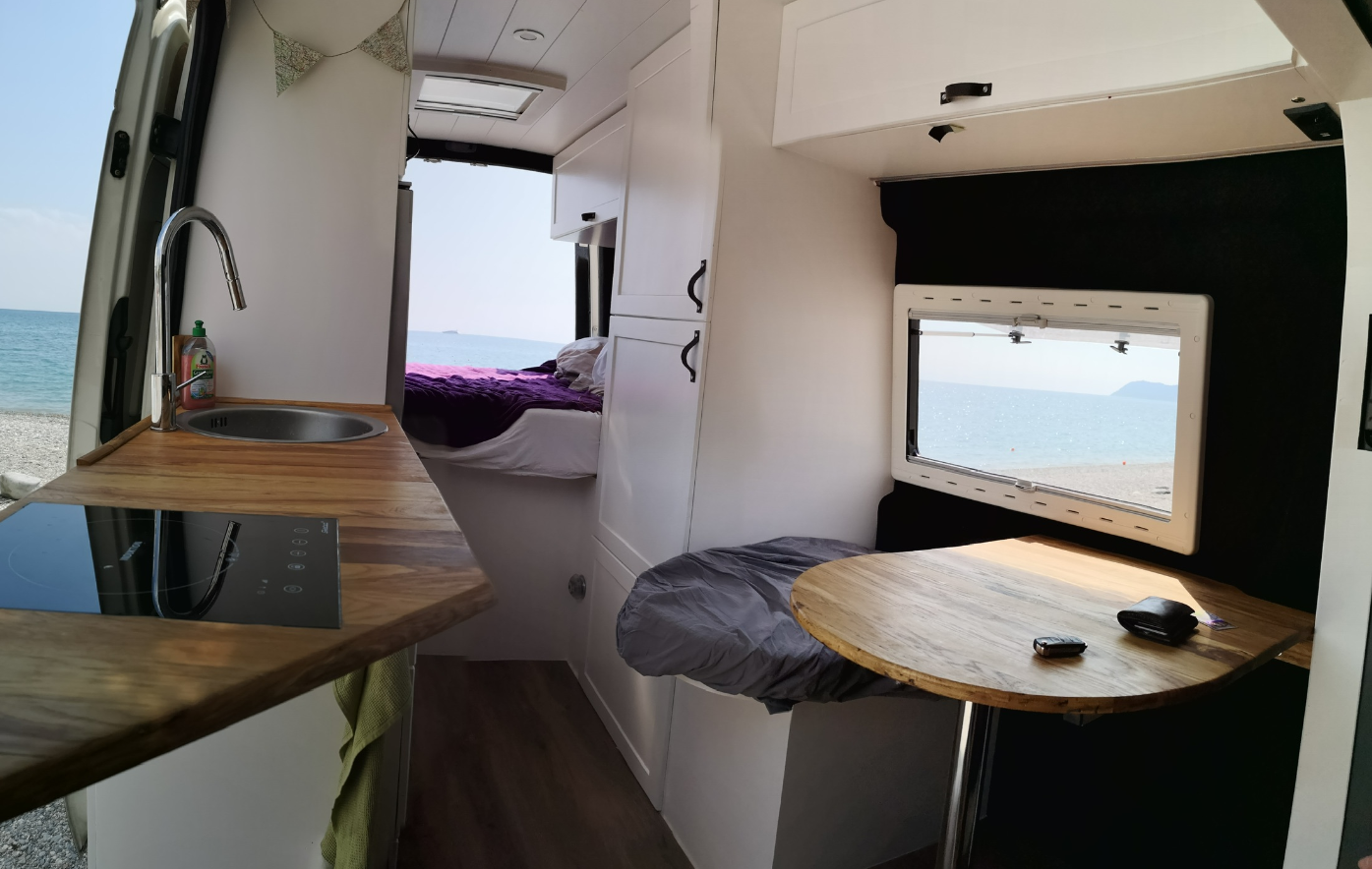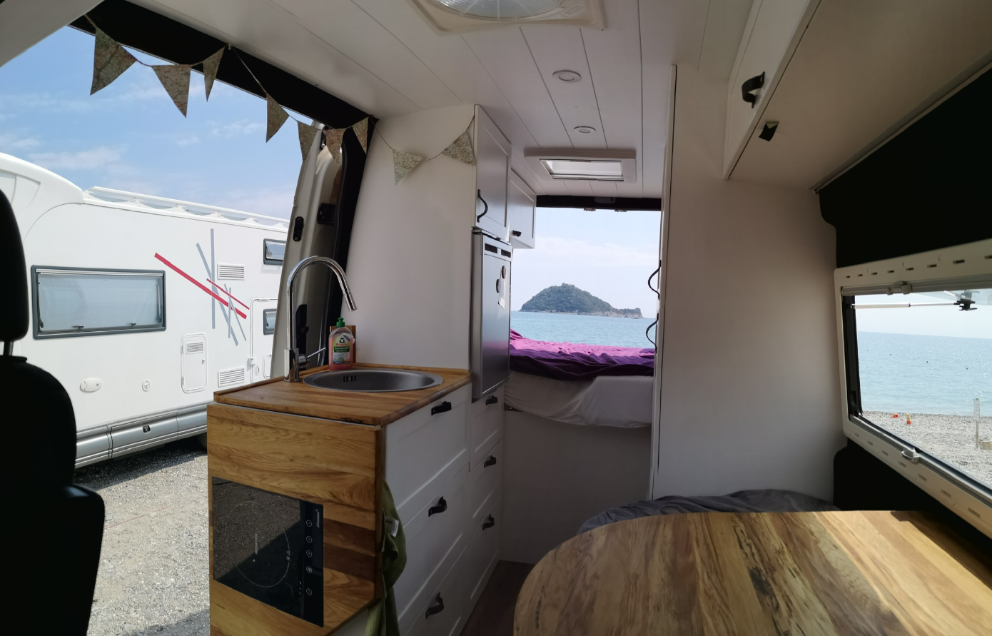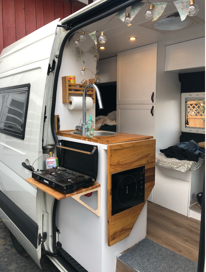 Der Grundausbau hat 6 Monate gedauert. Trockentrenntoilette, Außendusche, Standheizung,