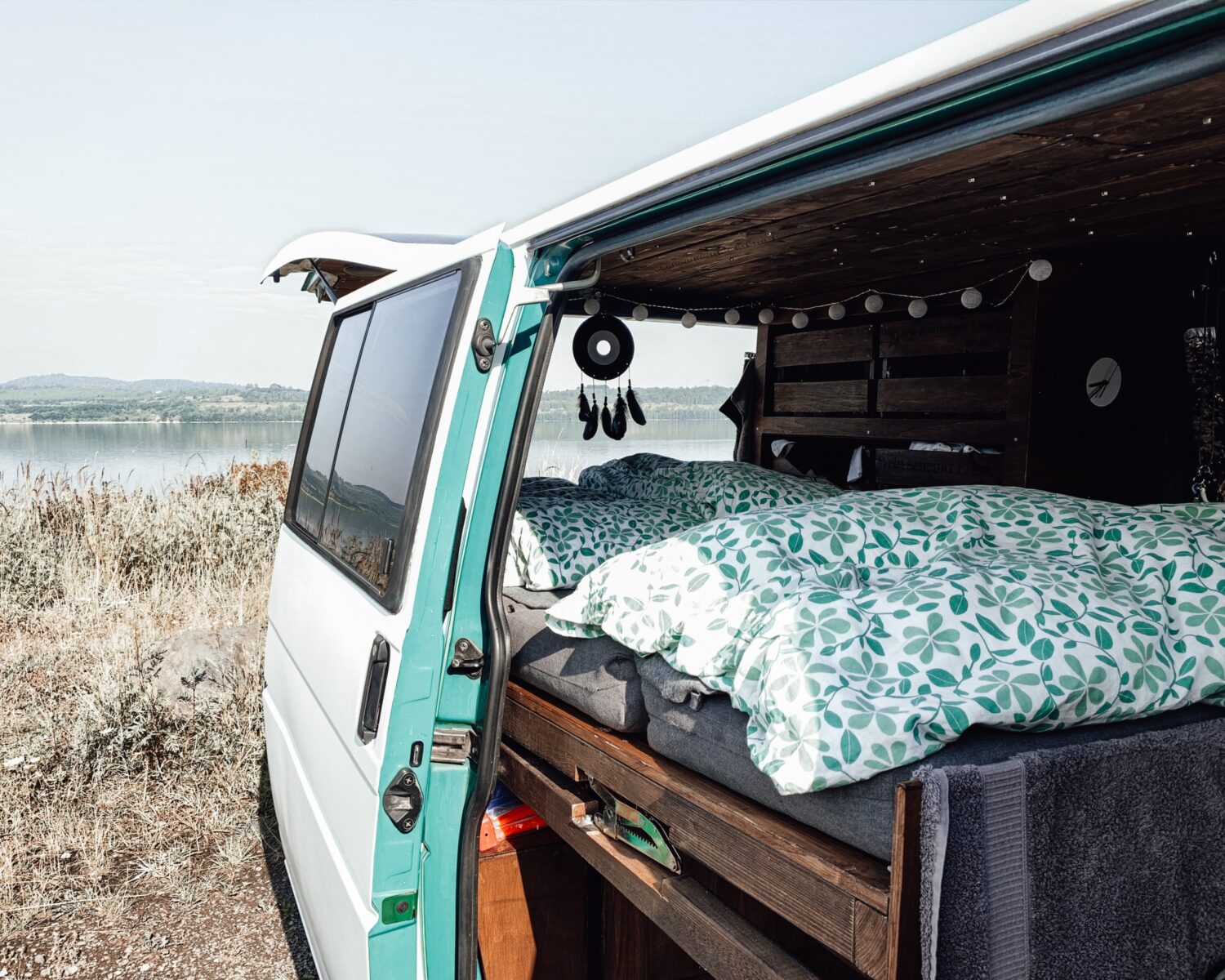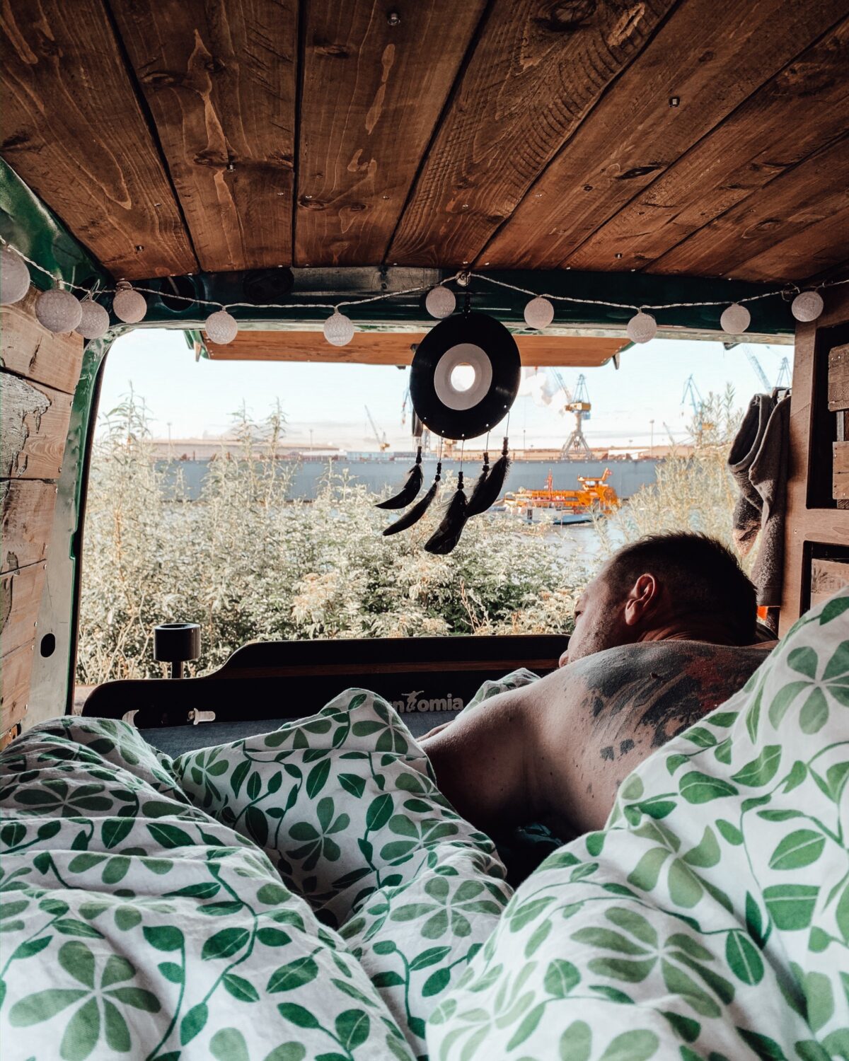 "Unser DIY-Europaletten-Ausbau hat ein knappes halbes Jahr gedauert und fand in einem Zelt statt" Vantastic.Halk