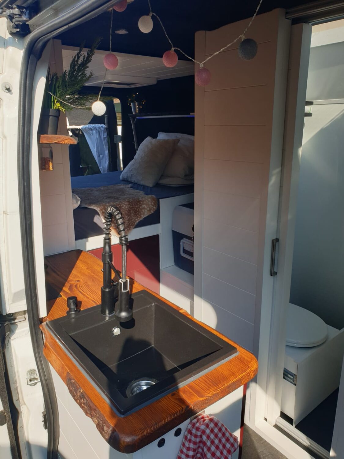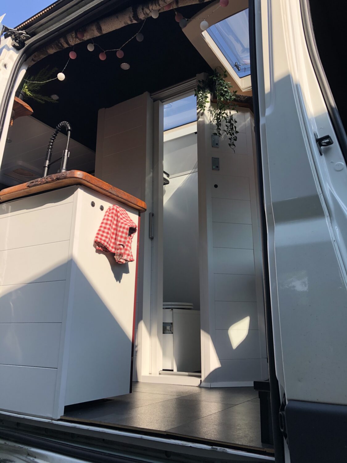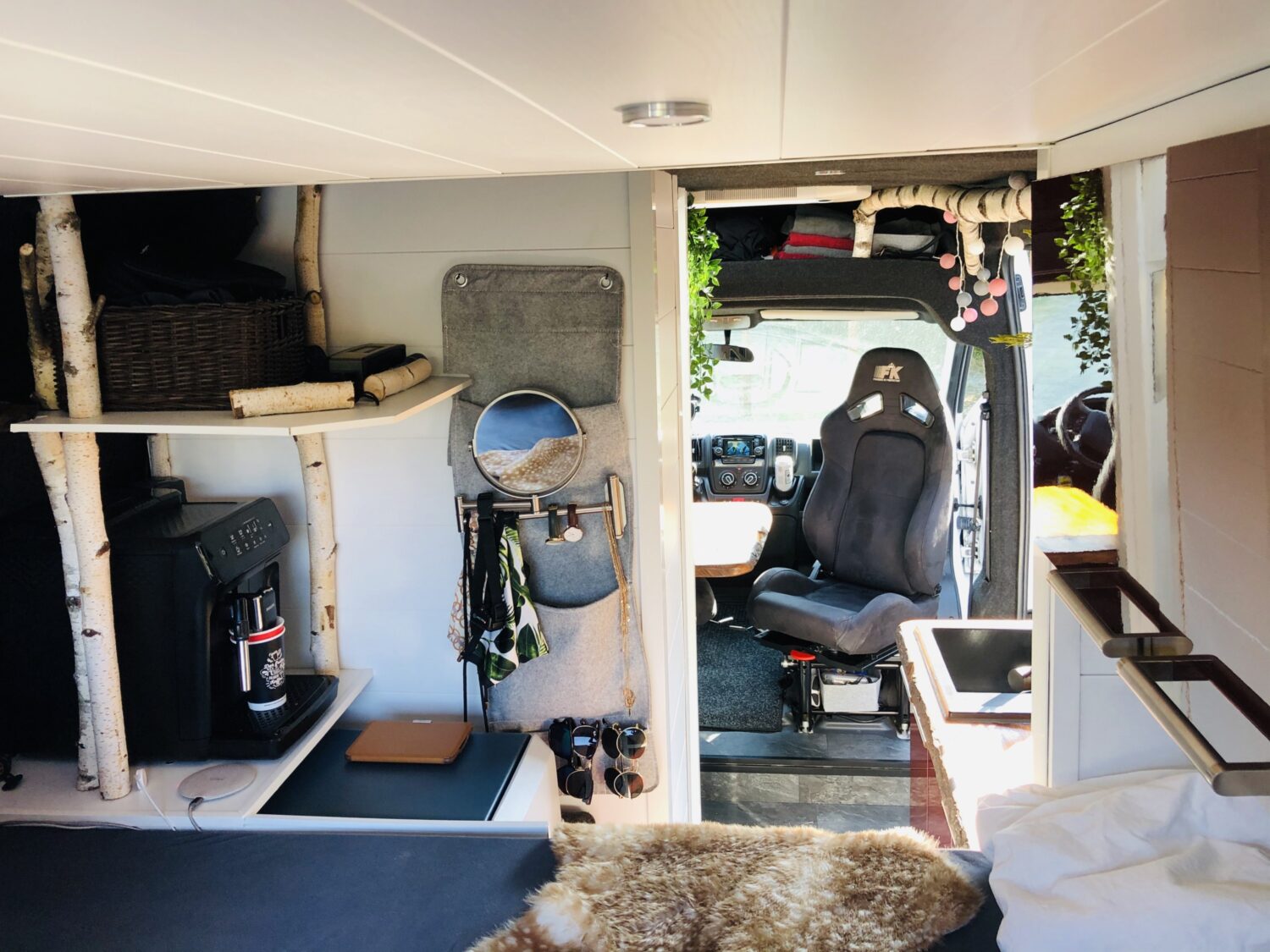 Wir stellen unseren Peugeot Boxer 2.3 TDI mit 153 PS zum Camperausbau vor :) Der Kastenwagen wurde leer als Transporter gekauft und anschließend komplett umgebaut. Als Transporter wurde er genutzt um Rollstühle und Krankenbetten zu transportieren. Somit wurde er nie überladen gefahren oder zugemüllt. Nach dem entkernen, wurde das Fahrzeug von uns im Inneren komplett gereinigt und versiegelt. Als nächstes wurden drei Dachfenster. Danach haben wir den Camper verkabelt und mit 230 Volt und 12 Volt Steckdosen, an den gewünschten Stellen bestückt. Die Stromquelle ist ein Goal Zero Yeti 1400, welcher 1500 Watt Dauerstrom und 3000 Watt Anlaufstrom mit einer Kapazität von 1400 Watt/h leistet. Der Yeti kann über die montierte Landstromsteckdose, sowie über einen montierten Spannungswandler geladen werden. Das Laden über Solar ist grundsätzlich möglich, jedoch noch nicht montiert. Grund hierfür war, dass wir nie länger als 2-3 Tage an einem Platz standen und den Yeti somit während der Fahrt laden konnten. Wir nutzen einen Kaffevollautomat, zwei Kompressorkühlboxen, einen Fön, sowie Stabmixer, Handylader, Licht usw. und kommen mit der genannten Kapazität 3-4 Tage, ohne Nachzuladen, aus. Das Wassersystem für Dusche, Spülbecken und Außenwasseranschluss wird über eine Druckwasserpumpe, die 7,5 Liter Wasser/Minute liefert, betrieben. Verbaut ist ein 120 Liter Frischwassertank. In der 80x60cm großen Dusche, ist eine Trockentrenntoilette verbaut, die sich auf Knopfdruck in die Dusche fahren lässt. Somit hat man die komplette Nasszelle zum duschen, wenn die Toilette nicht benötigt wird. In der Dusche befindet sich ein 50x70cm großes Dachfenster, welches eine Stehhöhe von über 2 Meter und ausreichend Tageslicht gewährleistet. Die Nasszelle kann über eine Schiebetür verschlossen werden. Das festverbaute Bett hat eine Größe von ca. 195 x 140cm. Über dem Bett ist ein Dachfenster mit integriertem Ventilator verbaut. Das Fenster kann bei Regen geöffnet bleiben und durch einen Verdunklungsrollo verdunkelt werden. Es findet sich dort ein Bedienfeld wieder, welches auch durch eine Fernbedienung bequem zu bedienen ist. Über dem Bett befinden sich zwei Hängeschränke. Diese nutzten wir als Kleiderschrank und kamen mit dem Platz sehr gut aus. Die Küche besteht aus zwei Unterschränken mit den dazugehörigen Türen. Unter dem Bett befindet sich ein Schrank mit 3 Schubladen. Diese verschwinden unter dem Bett und lassen sich passgenau in die Küche ausziehen. In der Arbeitsplatte befindet sich ein Spülbecken mit schwenkbarem Wasserhahn und einer versenkbaren 3er Steckdose (230 Volt). Über der Arbeitsfläche ist eine weitere kleine Ablage montiert, an der ein LED-Band in einem Aluminiumprofil mit Milchglas befestigt ist. Dieses lässt sich mit Farbwechsel über eine Fernbedienung bedienen. Gleiches gilt für eine Ablage über dem Kopfteil im Bett. Zwischen der Nasszelle und dem Fahrersitz befindet sich die Yeti, sowie ein Stromschrank, indem die einzelnen 12v Stromkreise abgesichert wurden. Über der Fahrerkabine befindet sich eine ausreichend große Ablage, in der wir Handtücher, die Verdunkelung für Front- und Seitenfenster, und vieles mehr verstaut haben. Das Fahrzeug wurde mit drei Sitzen (ein Fahrersitz und Beifahrer-Doppelsitzbank) gekauft. Diese haben wir durch zwei Sportsitze ersetzt, die jeweils zusätzlich eine Drehkonsole besitzen. Somit lassen sich die Sitze bequem drehen und mit einem schwenkbaren Tisch erweitern. Unter dem Bett findet sich ein sehr großer Stauraum wieder, der durch die beiden Hecktüren zugänglich ist. Hier lässt sich der Frischwassertank befüllen. Zusätzlich gibt es hier einen Anschluss für unsere Außendusche sowie eine weitere 230V Steckdose. Eine Anhängerkupplung welche 2,5 Tonnen ziehen darf haben wir nachträglich ergänzt. Zu guter Letzt, damit der Boxer auch im Winter das Campen erlaubt, haben wir eine 4kw Diesel- Standheizung verbaut, die über ein Bedienelement für warme Luft im Innenraum, sowie über einen Warmwasserboiler für warmes Wasser in der Dusche und Spüle sorgt. Der Boiler kann das Wasser alternativ über 230Volt erwärmen.