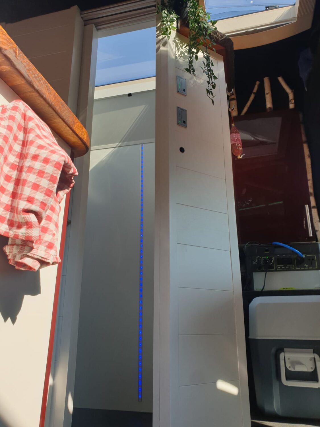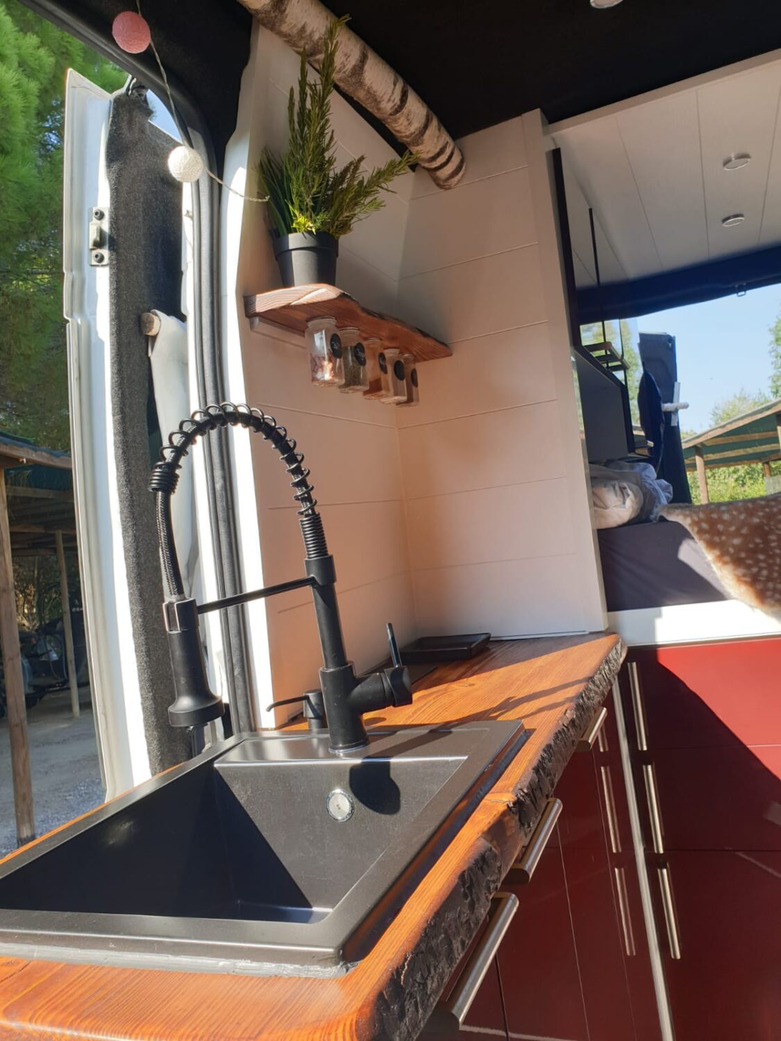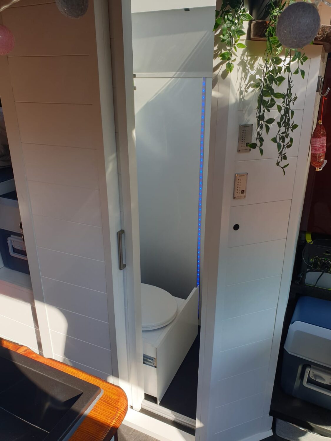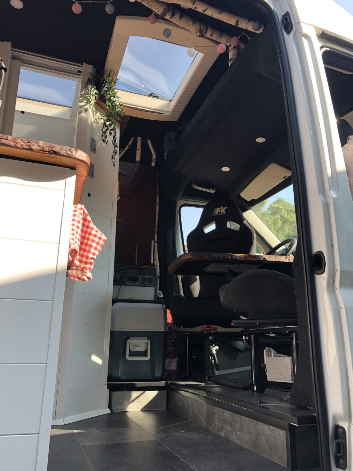 Wir stellen unseren Peugeot Boxer 2.3 TDI mit 153 PS zum Camperausbau vor :) Der Kastenwagen wurde leer als Transporter gekauft und anschließend komplett umgebaut. Als Transporter wurde er genutzt um Rollstühle und Krankenbetten zu transportieren. Somit wurde er nie überladen gefahren oder zugemüllt. Nach dem entkernen, wurde das Fahrzeug von uns im Inneren komplett gereinigt und versiegelt. Als nächstes wurden drei Dachfenster. Danach haben wir den Camper verkabelt und mit 230 Volt und 12 Volt Steckdosen, an den gewünschten Stellen bestückt. Die Stromquelle ist ein Goal Zero Yeti 1400, welcher 1500 Watt Dauerstrom und 3000 Watt Anlaufstrom mit einer Kapazität von 1400 Watt/h leistet. Der Yeti kann über die montierte Landstromsteckdose, sowie über einen montierten Spannungswandler geladen werden. Das Laden über Solar ist grundsätzlich möglich, jedoch noch nicht montiert. Grund hierfür war, dass wir nie länger als 2-3 Tage an einem Platz standen und den Yeti somit während der Fahrt laden konnten. Wir nutzen einen Kaffevollautomat, zwei Kompressorkühlboxen, einen Fön, sowie Stabmixer, Handylader, Licht usw. und kommen mit der genannten Kapazität 3-4 Tage, ohne Nachzuladen, aus. Das Wassersystem für Dusche, Spülbecken und Außenwasseranschluss wird über eine Druckwasserpumpe, die 7,5 Liter Wasser/Minute liefert, betrieben. Verbaut ist ein 120 Liter Frischwassertank. In der 80x60cm großen Dusche, ist eine Trockentrenntoilette verbaut, die sich auf Knopfdruck in die Dusche fahren lässt. Somit hat man die komplette Nasszelle zum duschen, wenn die Toilette nicht benötigt wird. In der Dusche befindet sich ein 50x70cm großes Dachfenster, welches eine Stehhöhe von über 2 Meter und ausreichend Tageslicht gewährleistet. Die Nasszelle kann über eine Schiebetür verschlossen werden. Das festverbaute Bett hat eine Größe von ca. 195 x 140cm. Über dem Bett ist ein Dachfenster mit integriertem Ventilator verbaut. Das Fenster kann bei Regen geöffnet bleiben und durch einen Verdunklungsrollo verdunkelt werden. Es findet sich dort ein Bedienfeld wieder, welches auch durch eine Fernbedienung bequem zu bedienen ist. Über dem Bett befinden sich zwei Hängeschränke. Diese nutzten wir als Kleiderschrank und kamen mit dem Platz sehr gut aus. Die Küche besteht aus zwei Unterschränken mit den dazugehörigen Türen. Unter dem Bett befindet sich ein Schrank mit 3 Schubladen. Diese verschwinden unter dem Bett und lassen sich passgenau in die Küche ausziehen. In der Arbeitsplatte befindet sich ein Spülbecken mit schwenkbarem Wasserhahn und einer versenkbaren 3er Steckdose (230 Volt). Über der Arbeitsfläche ist eine weitere kleine Ablage montiert, an der ein LED-Band in einem Aluminiumprofil mit Milchglas befestigt ist. Dieses lässt sich mit Farbwechsel über eine Fernbedienung bedienen. Gleiches gilt für eine Ablage über dem Kopfteil im Bett. Zwischen der Nasszelle und dem Fahrersitz befindet sich die Yeti, sowie ein Stromschrank, indem die einzelnen 12v Stromkreise abgesichert wurden. Über der Fahrerkabine befindet sich eine ausreichend große Ablage, in der wir Handtücher, die Verdunkelung für Front- und Seitenfenster, und vieles mehr verstaut haben. Das Fahrzeug wurde mit drei Sitzen (ein Fahrersitz und Beifahrer-Doppelsitzbank) gekauft. Diese haben wir durch zwei Sportsitze ersetzt, die jeweils zusätzlich eine Drehkonsole besitzen. Somit lassen sich die Sitze bequem drehen und mit einem schwenkbaren Tisch erweitern. Unter dem Bett findet sich ein sehr großer Stauraum wieder, der durch die beiden Hecktüren zugänglich ist. Hier lässt sich der Frischwassertank befüllen. Zusätzlich gibt es hier einen Anschluss für unsere Außendusche sowie eine weitere 230V Steckdose. Eine Anhängerkupplung welche 2,5 Tonnen ziehen darf haben wir nachträglich ergänzt. Zu guter Letzt, damit der Boxer auch im Winter das Campen erlaubt, haben wir eine 4kw Diesel- Standheizung verbaut, die über ein Bedienelement für warme Luft im Innenraum, sowie über einen Warmwasserboiler für warmes Wasser in der Dusche und Spüle sorgt. Der Boiler kann das Wasser alternativ über 230Volt erwärmen.