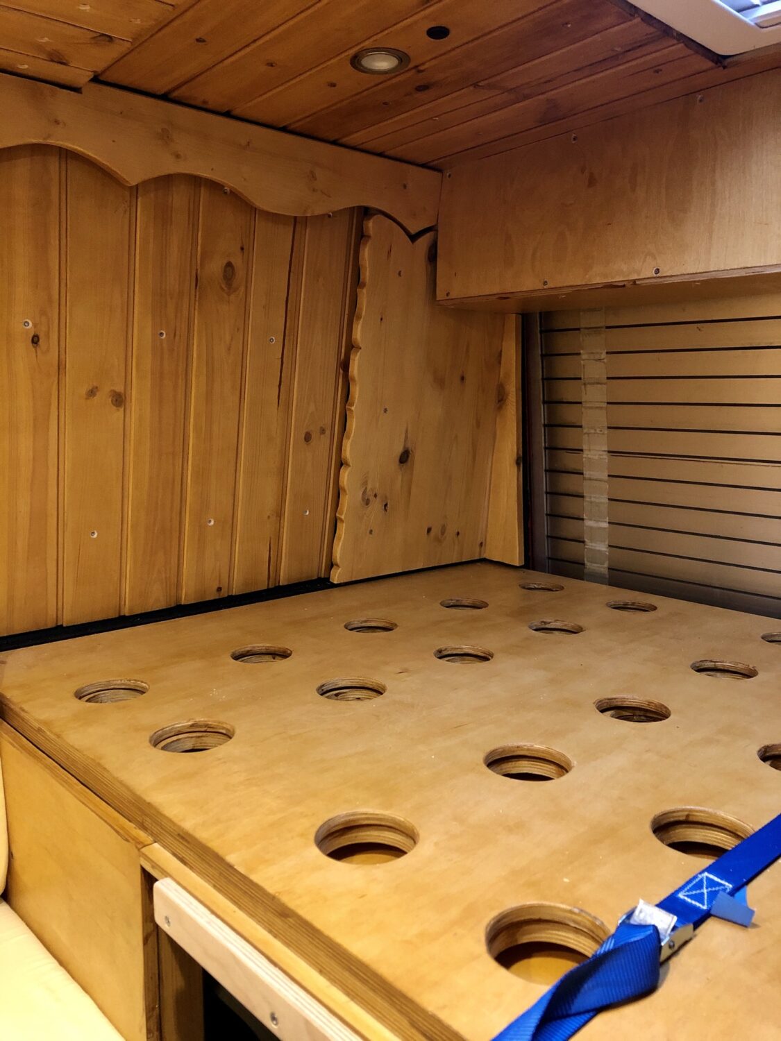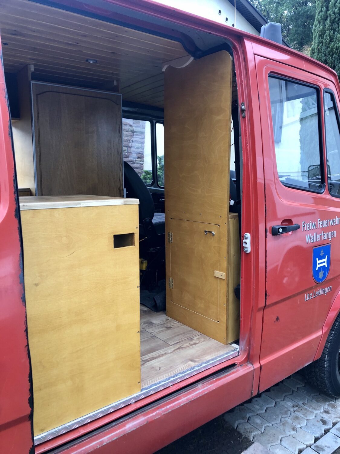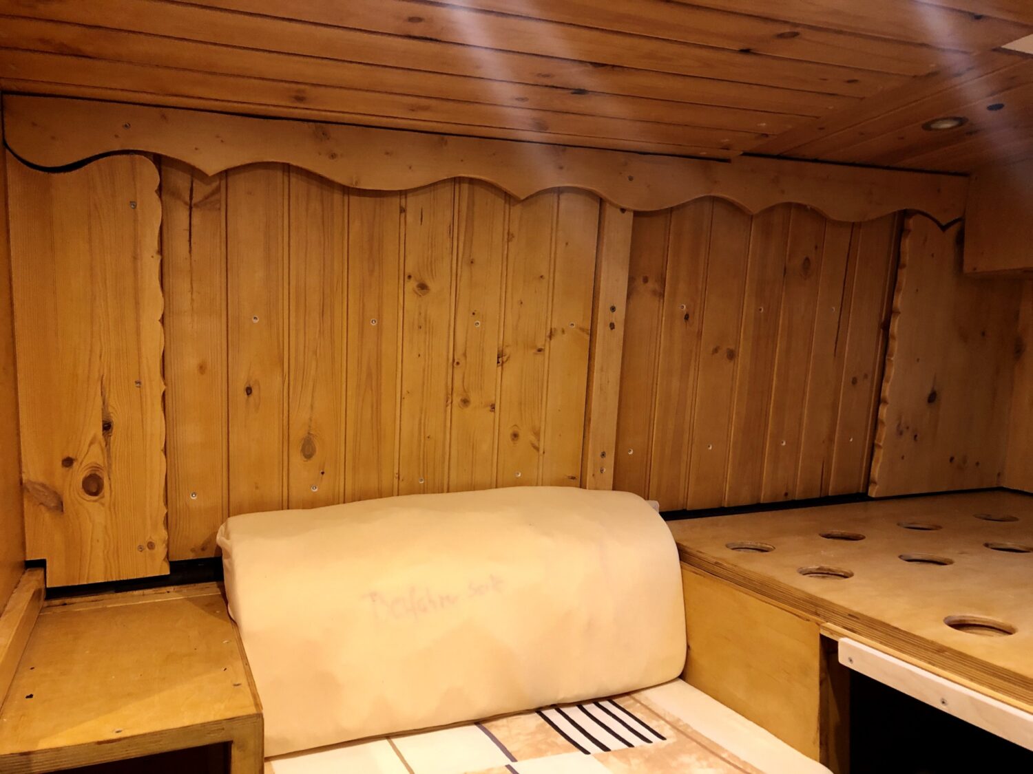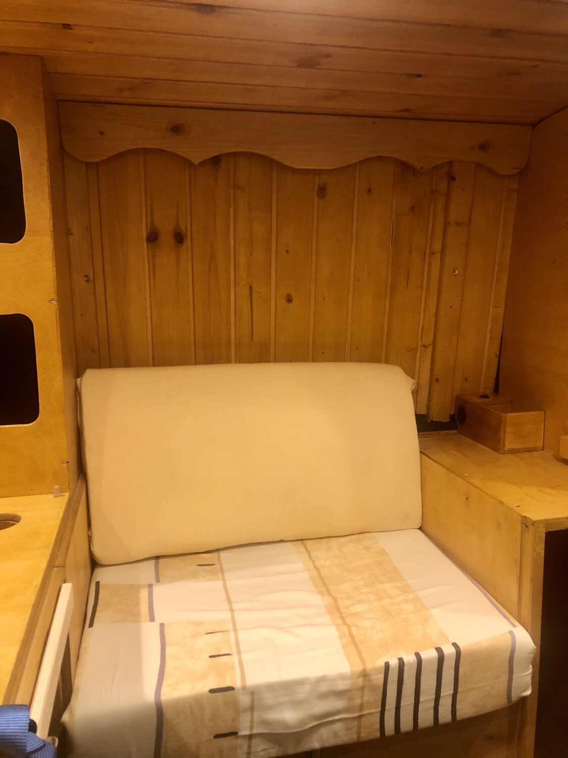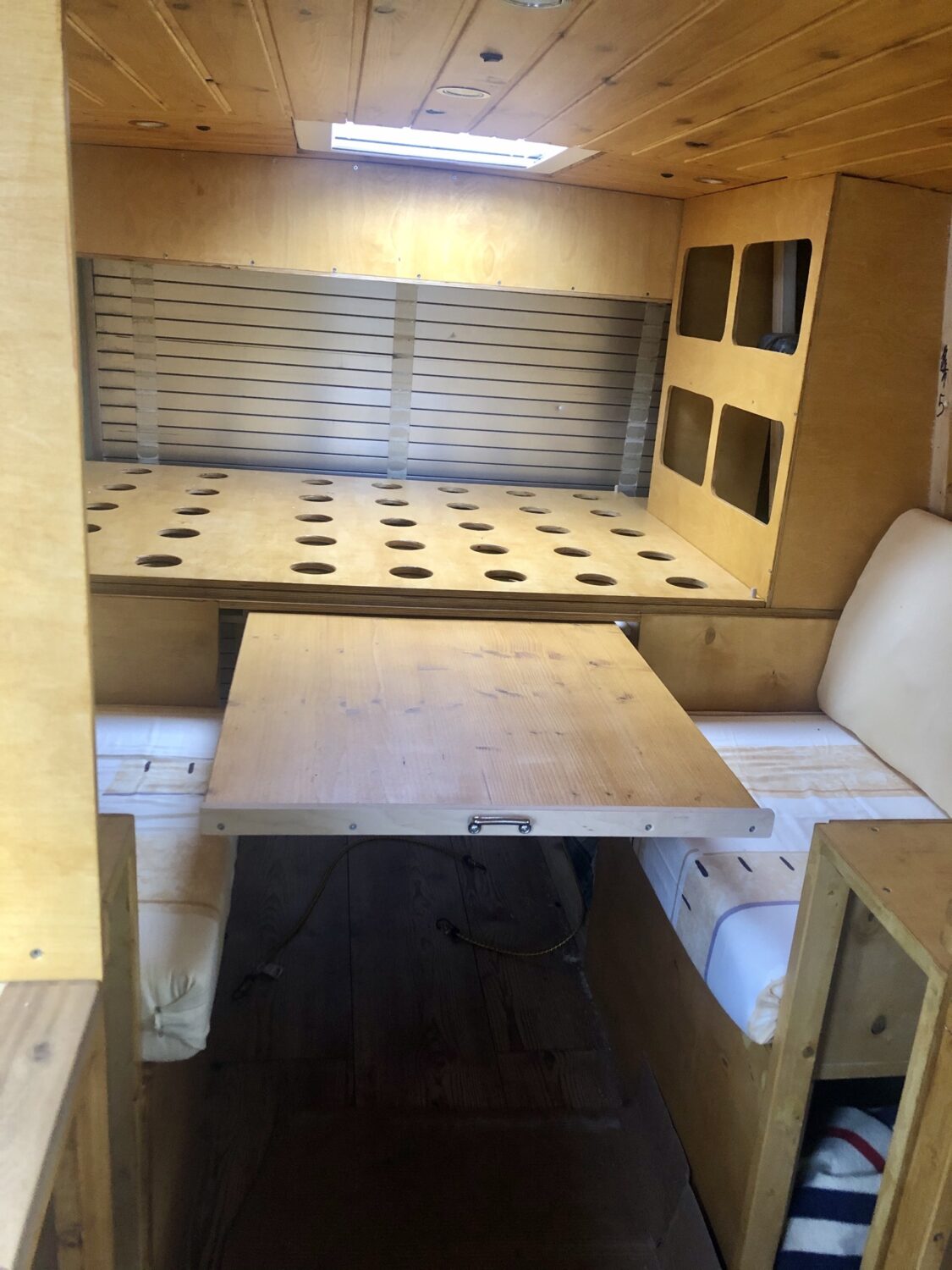 Wir arbeiten seit Februar 2020 an Gustav und sind reisefähig, aber noch lange nicht mit dem Ausbau fertig. Der Ausbau an sich ist einfach gehalten, vorwiegend Holz. Das Bett ist im Heck und ausziehbar, von 0,95 m x 1,4 m auf 1,90 m x 1,4 m. Wasseranschluss und Strom, ohne die geplante Solaranlage, sind soweit montiert. Im Hochschrank befindet sich ein Kompressorkühlschrank und darunter die Trockentrenntoilette. Mal sehen, wie es weitergeht. In der Planung sind : Standheizung, Außendusche, Dachterrasse, Solaranlage, Marquise, Induktionskochfeld.