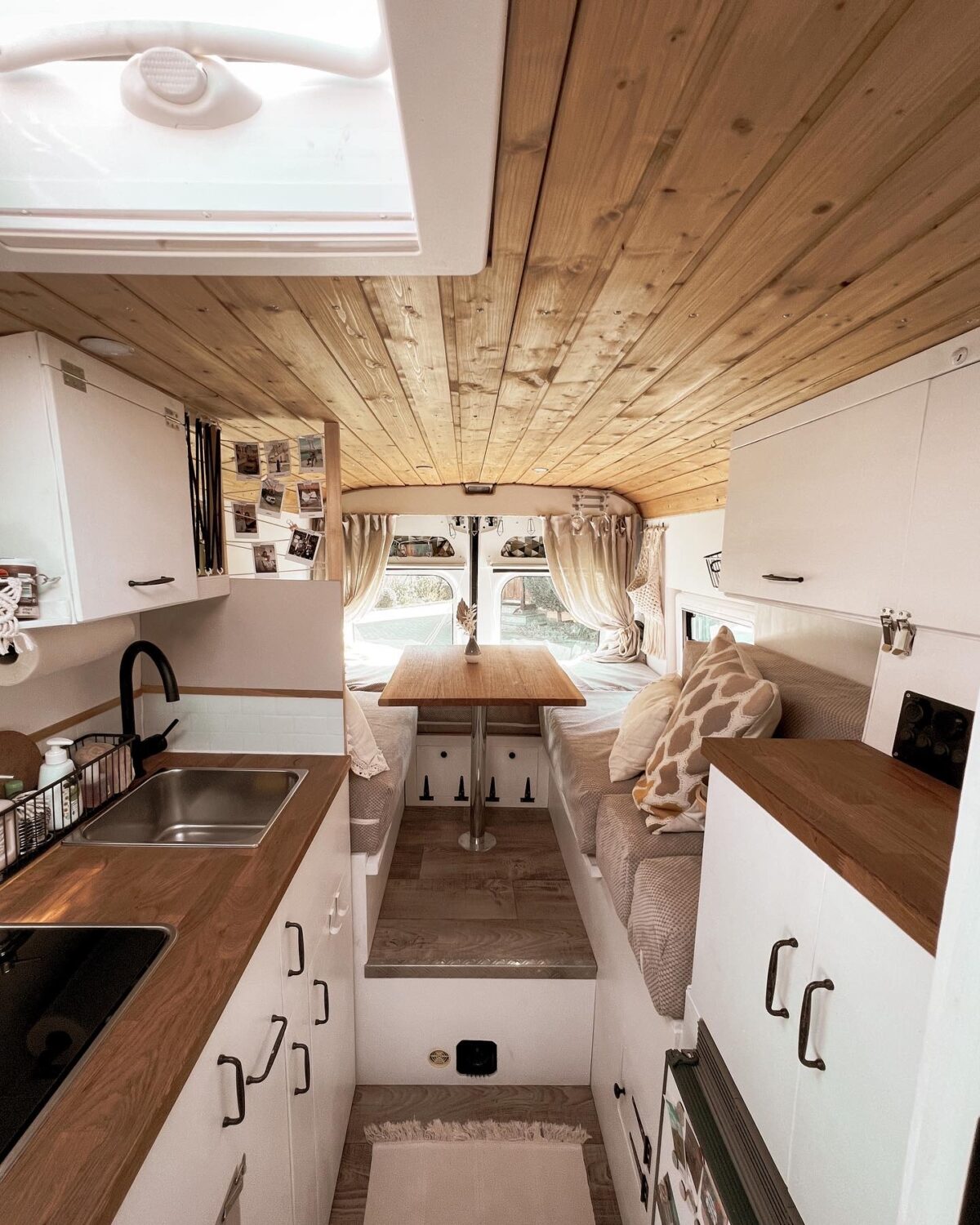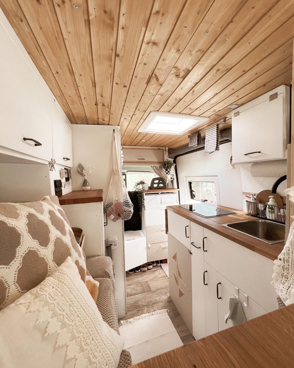 Jedes Wochenende von Freitag bis Sonntag, mehrere Monate lang ,habe ich meinen Camper umgebaut. Zum Glück hatte ich die Unterstützung meiner Brüder. Eine Stichsäge von einer Kreissäge zu unterscheiden war am Anfang nicht leicht. Im August 2020 konnte ich ihn dann endlich zulassen. Eine Sitzgelegenheit, welche man zur Schlafgelegenheit umbauen kann, eine Küchenzeile mit Gaskochfeld eine Dusche und eine Trockentrenntoilette sind verbaut. Was will man mehr. Für mich ist mein kleines Zuhause auf Rädern etwas ganz besonderes, mit viel Arbeit und Liebe zum Detail - oder eher zur Deko - habe ich mir einen Ort geschaffen an dem es sich gleich beim einsteigen wie Urlaub anfühlt.