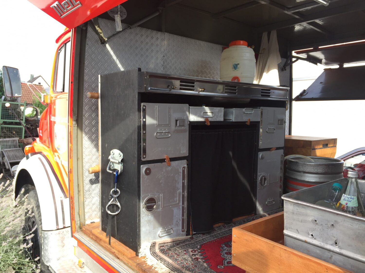 Ehrliche und einfache Materialien dominieren unseren Innenausbau, der sich simple aber dennoch kreativ immer weiter entwickelt. Wir versuchen einen Ausbau zu realisieren, der zum Charakter des Fahrzeugs passt, wie auch der Verarbeitung der Materialien gerecht wird! Wir streben einen robusten Aufbau an, welcher bei Bedarf auch schnell wieder entnommen werden kann, um unsere Lola auch mal als Transporter verwenden zu können. Um den Charme des Oldtimers zu behalten, haben wir versucht so viel Teile wie möglich aus dem ehemaligen Feuerwehrleben im Innenraum wieder zu verwenden. So darf die Geschichte des Fahrzeugs in neuer Form weiterleben. Unser Fahrzeug soll (und muss irgendwie auch) aufgrund des Historischen Kennzeichens, weitestgehend äußerlich unverändert bleiben.