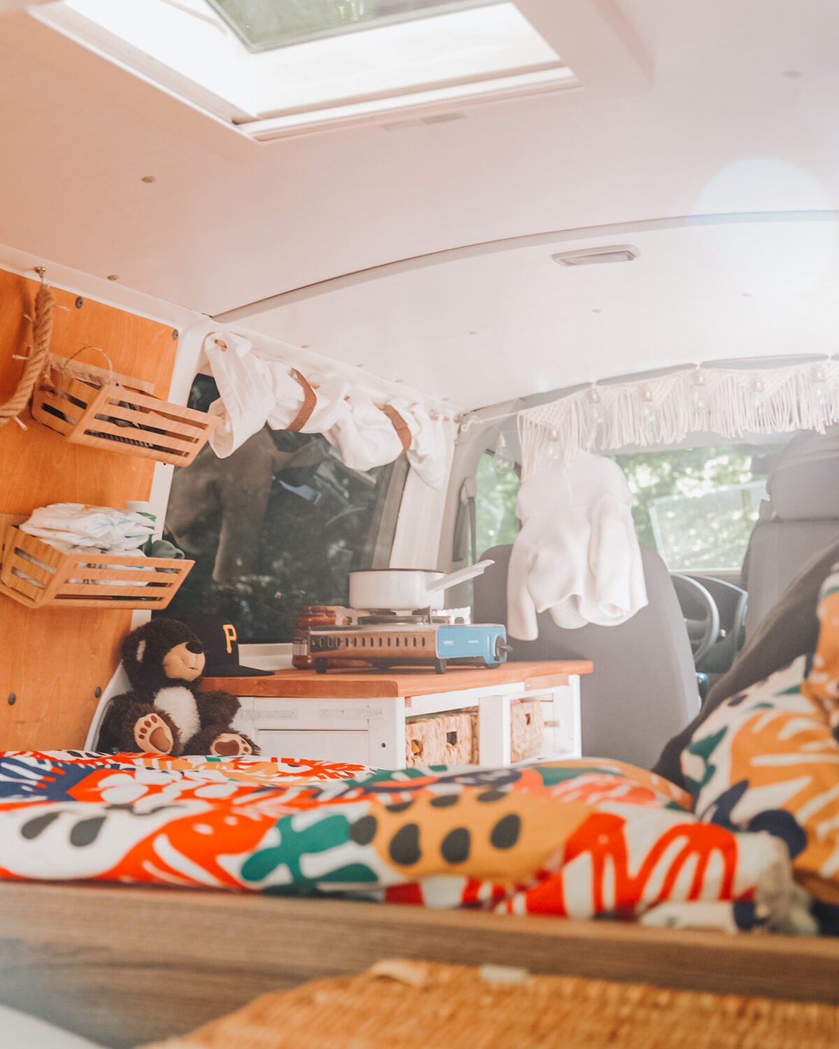 Besonders stolz sind wir auf unser Bett welches über einen ausziehbaren Bettkasten verfügt und die kleine Küche.