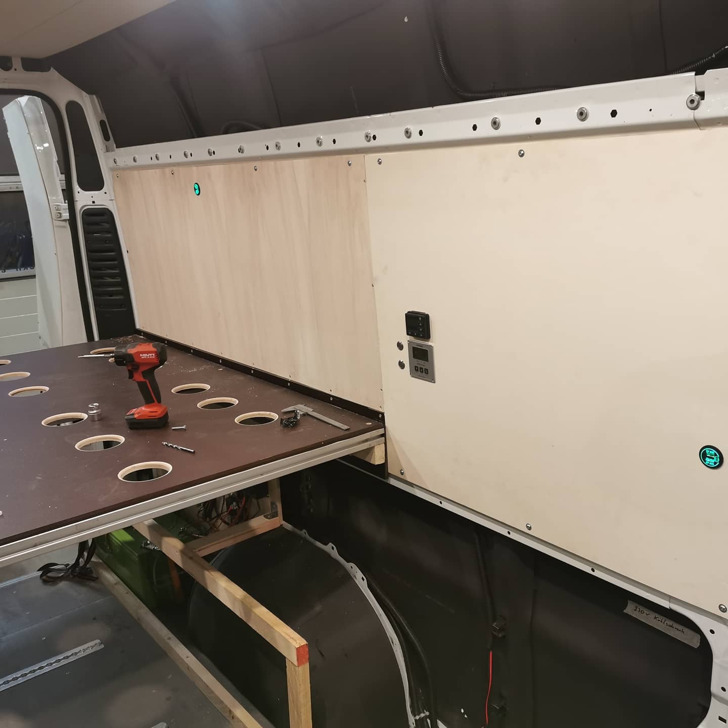 Wir stecken noch mitten im innen Ausbau.Als nächstes kommt die Dusche incl frischwasserversorgung. Außen ist er so gut wie fertig.