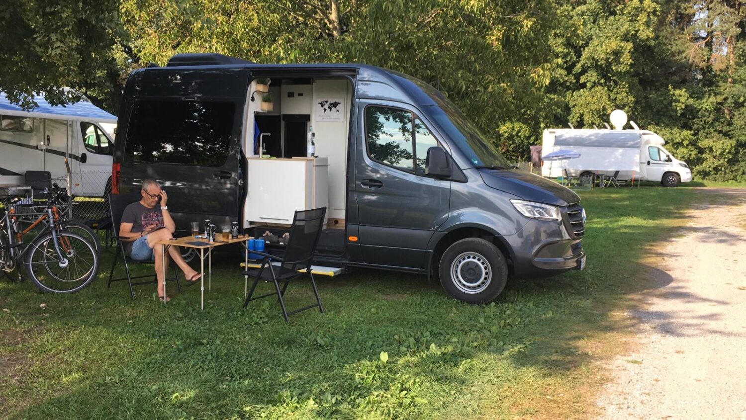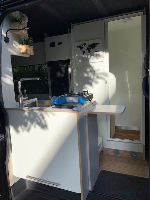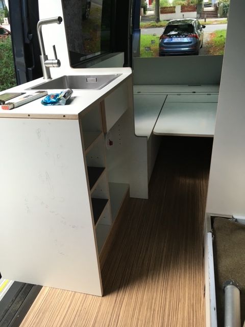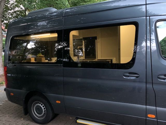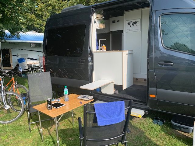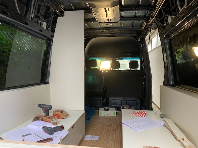 Im Juni 2020 haben wir den Sprinter gekauft und auch schon gleich mit der Planung begonnen. Wir wollten unbedingt eine Hecksitzgruppe, die man zum schlafen umbauen kann damit man in Längsrichtung schlafen kann. Ein WC mit Dusche sollte auch eingebaut werden. Nach Bestellung diverser Teile und entkernen des Vans (Sitzbänke, Verkleidungen, Himmel etc.) begannen wir zusammen mit einem befreundeten Tischler mit dem Ausbau der Mitte September soweit war, dass wir unsere erste Testfahrt an den Gardasee machen konnten. Ok, noch ist nicht alles fertig. Im Frühjahr wird noch ein Dachfenster und die Solaranlage eingebaut. Aber wir waren total Happy, dass alles so gut geklappt hat. Besonders stolz sind wir auf die bisherige Elektrik. Sogar die elektrische Fußbodenheizung funktioniert tadelos :) ...und das hat mich echt Nerven gekostet diesen Thermostat anzuschließen... Einiges muss noch geändert und angepasst werden.Aber so ganz fertig wird man ja nie :)
