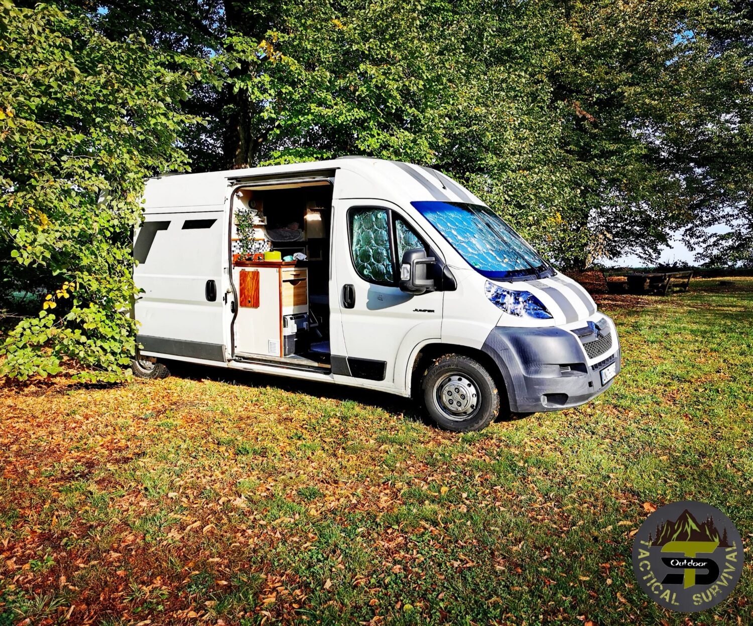 Die Vorgabe war bei unserem Ausbau, dass wir mit 4 Personen in ihm schlafen sollten, er eine kleine Küche haben muss, 4 Fahrräder im inneren transportiert werden können und natürlich auch ein Klo hat. Duschen sollte nach außen gelegt werden. Natürlich sollte es nicht viel kosten, was nicht so geklappt hat wie wir dachten. Wir wurden mit diesem Wagen heftig übers Ohr gehauen, was wir allerdings viel zuspät gemerkt haben. Sehr viele Sachen waren Reparaturbedürftig und so ging schon viel Geld in nicht geplante Probleme. Aber schließlich haben wir es dann doch alles umsetzen können was wir so wollten. Oben gibt es ein 140x200 Bett und in der Garage drunter zwei "Knastbetten" zum klappen in 70x200. Hochgeklappt passen super 4 Fahrräder unter das große Bett. Weiter vorne gibt es nun im Eingang eine kleine Küche mit Gasherd und Kühlbox, sowie ein kleines Waschbecken. Auch gibt es noch eine Bank in der nun die gesamte Elektronik eingebaut wurde. Heute würde ich einige Sachen sicher anders bauen und auch beim Kauf auf viel mehr Dinge achten. Aber wir lieben unser großes Monster trotz, oder gerade wegen der ganzen Probleme die wir hatten und noch habenÃ°à ¸ÃÂâ°