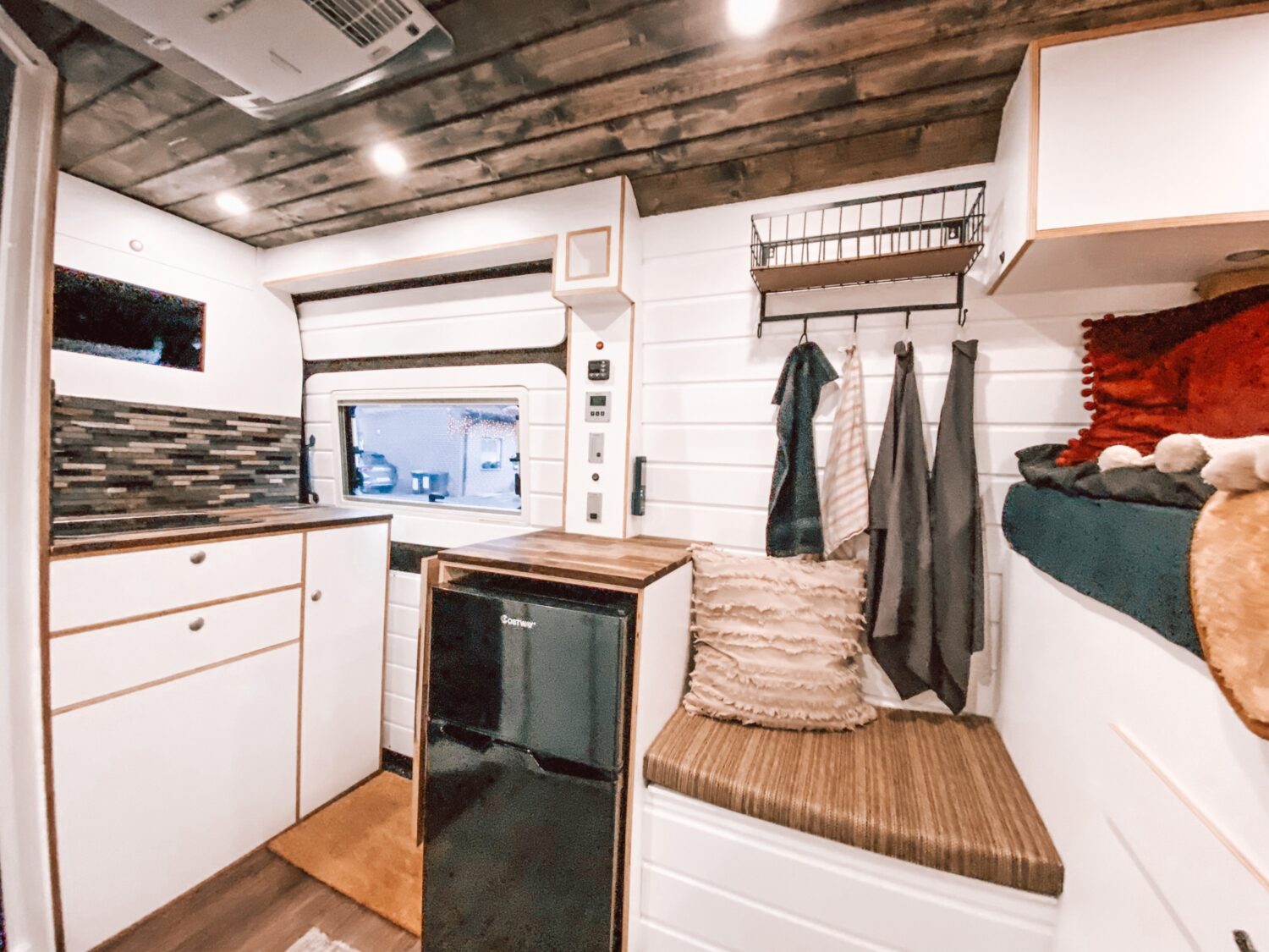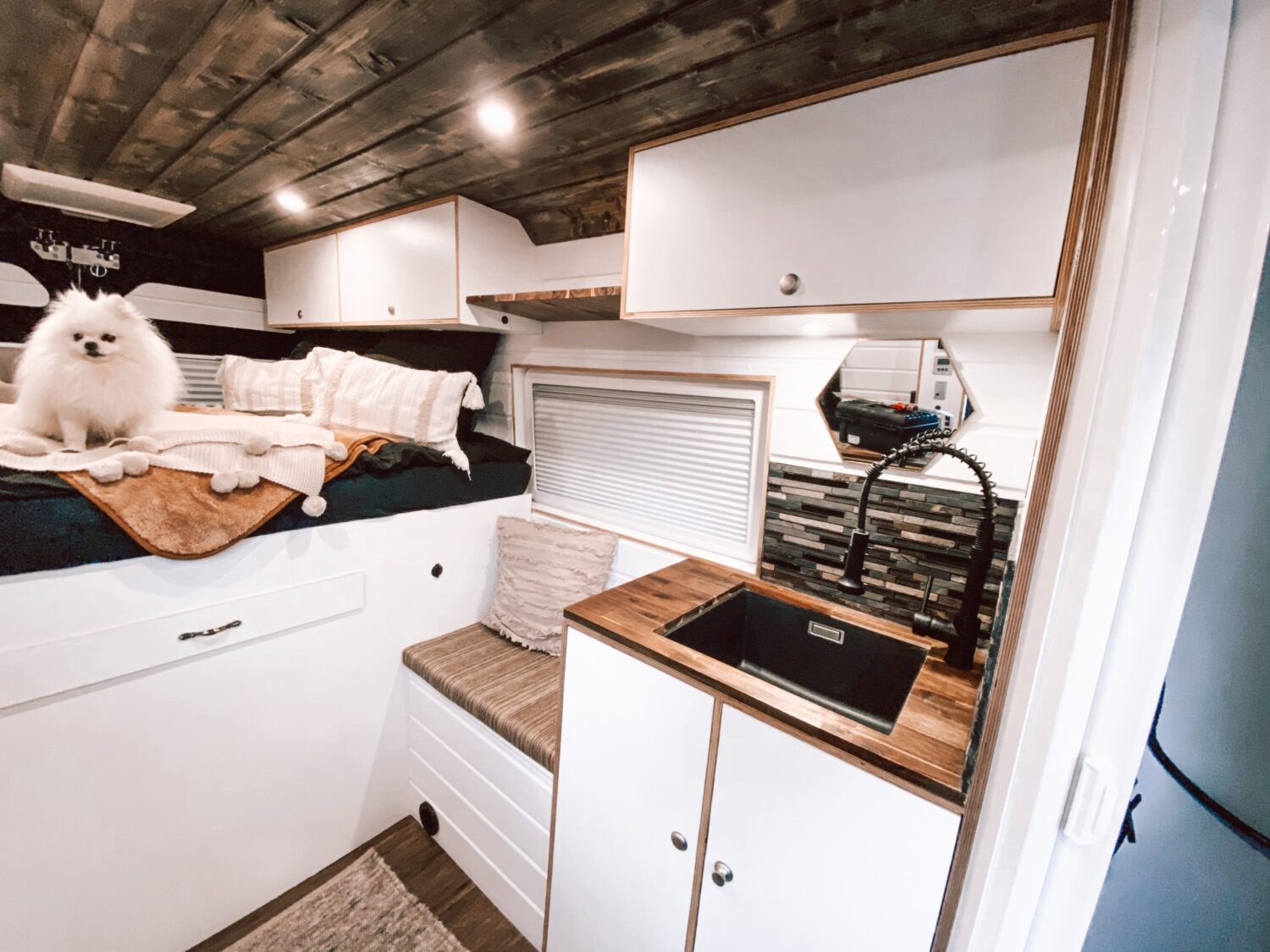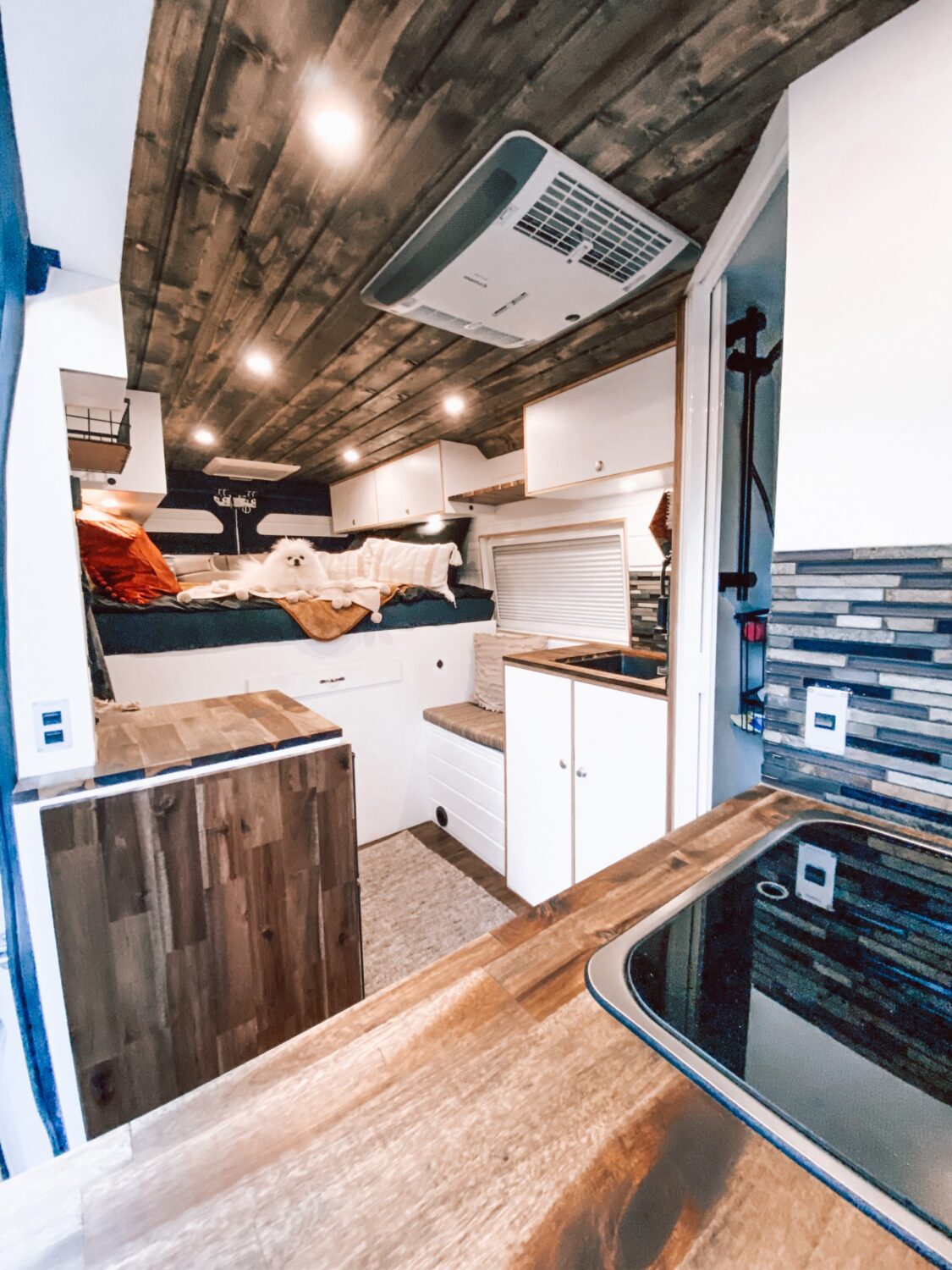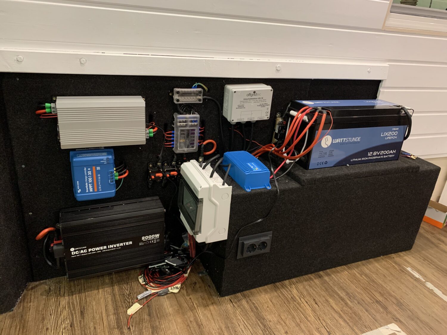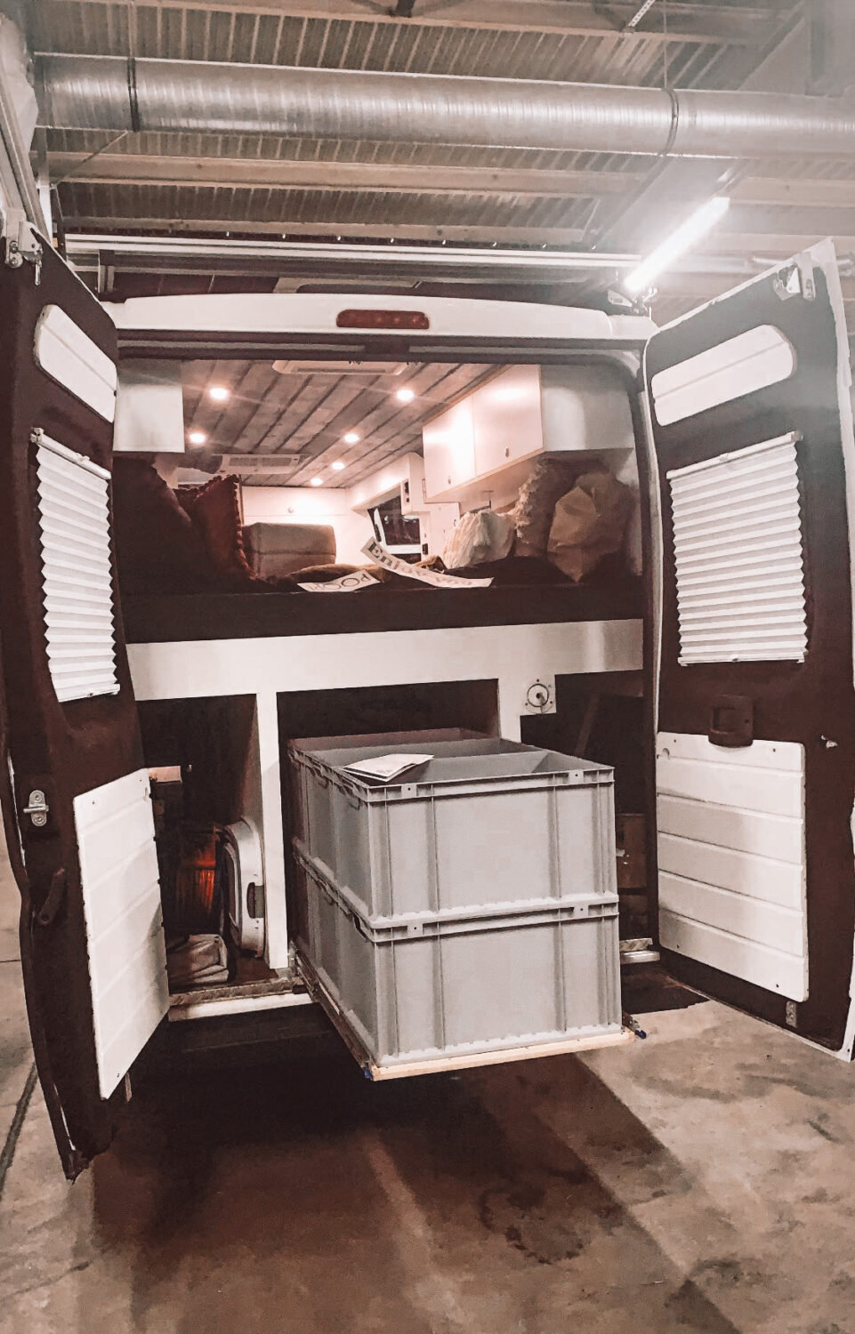 Wir haben Willi in 3 Monaten ausgebaut und haben jeden Tag ca 5-8. Stunden an ihm gewerkelt. Besonders stolz sind wir auf den Innenausbau. Schick und trotzdem gemütlich wie zu Hause. Wir können komplett Autark stehen dank 310Watt Solar und einer 200Ah Lithium Batterie. Außerdem haben wir eine Dachklimaanlage verbaut. Willi hat in der Anschaffung 18000€ gekostet und der Ausbau ca 15000€.