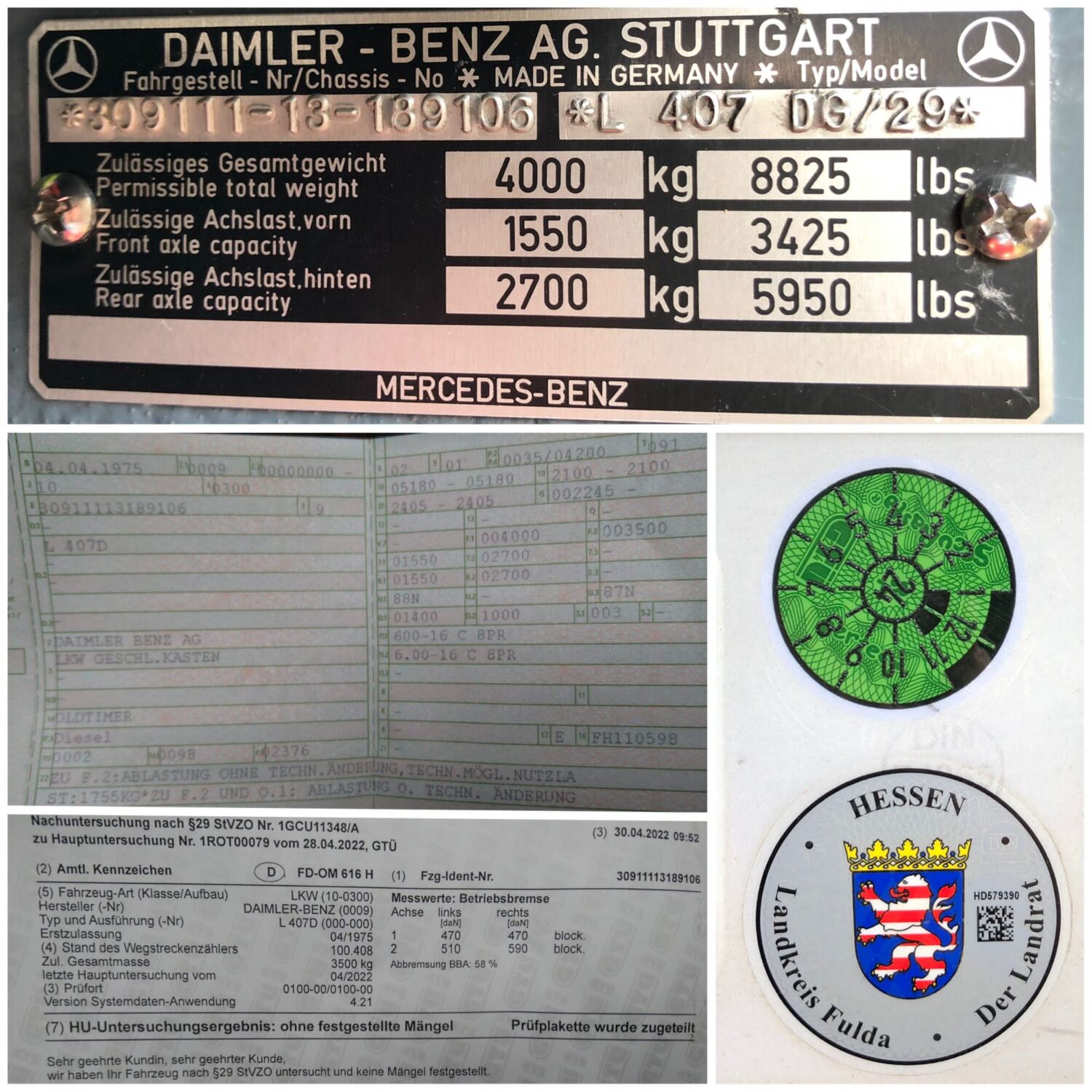 Mercedes L 407 D Düdo Wohnmobil Oldtimer Van Womo TÜV NEU H-Kennzeichen