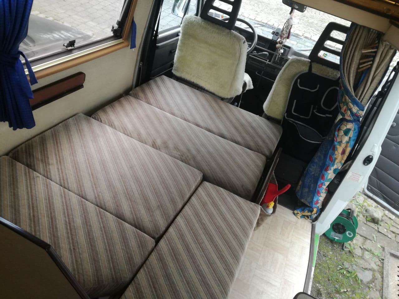 nach sechs tollen Jahren trennen wir uns von unserem geliebten Campingbus, da unsere Reise demnächst ohne Bus weitergeht und wir ihn in liebevolle Hände abgeben wollen. Er hat uns in den letzten Jahren wunderbare Urlaube und Reisen beschert. Da er schon einige Jahre auf den Straßen der Welt unterwegs ist, sind verschiedene Dinge in der Zwischenzeit erneuert worden. Dennoch ist er für sein Alter in einem guten Zustand, der Unterboden ist rostfrei und der Motor läuft gut. Unter anderem wurde gemacht: Zündschloss neu 2021, Auspuff geschweißt 2021, Kühlsystem gereinigt 2021, neue Starterbatterie 2020, neue Wohnraumbatterie 2020, Schweller rechts neu geschweißt 2019, Kupplung 2017, Bremsen 2017, Lichtmaschine 2016 und diverse Kleinigkeiten (Rechnungen sind vorhanden).