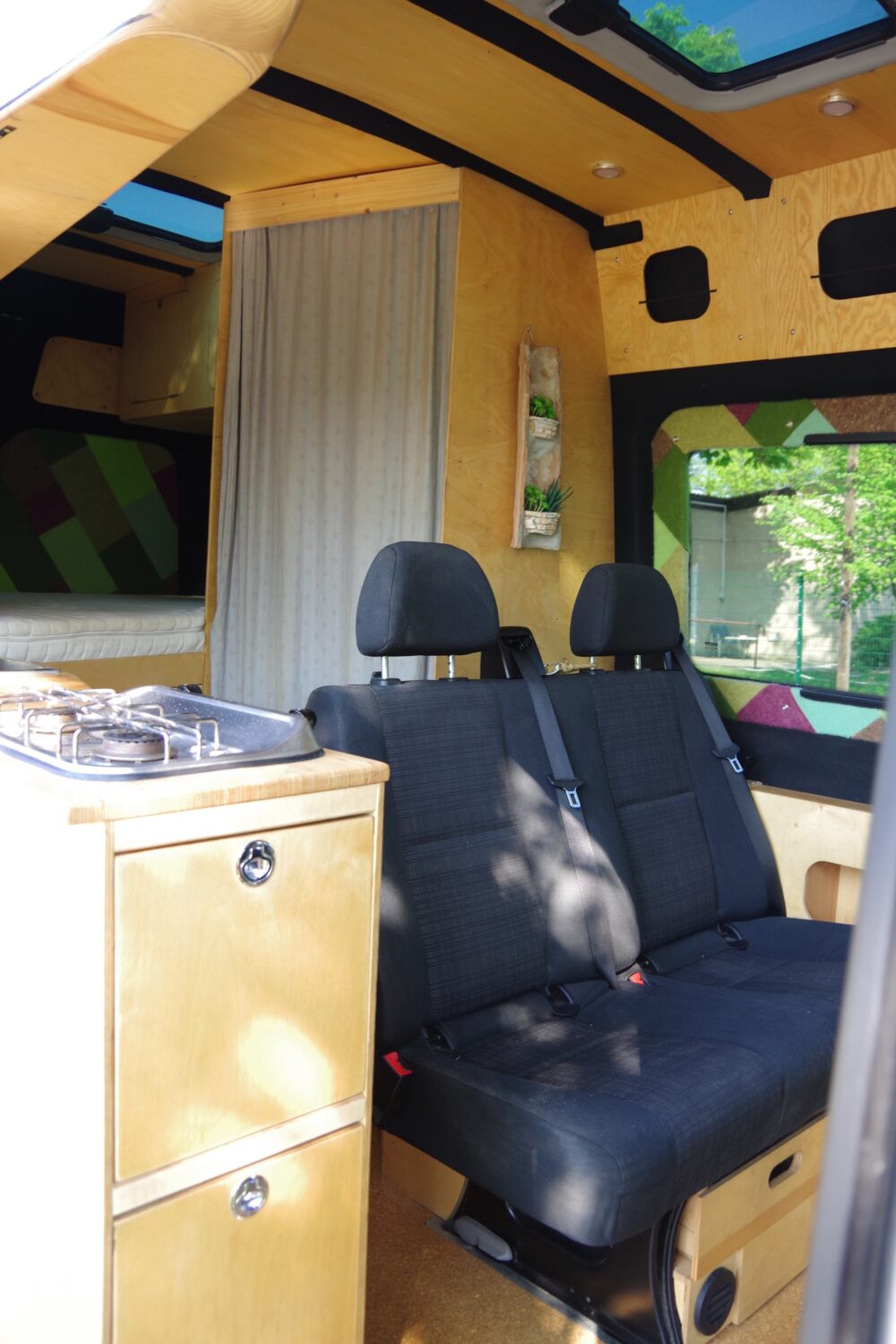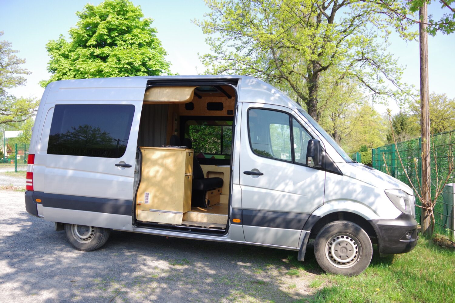 Da ich mich verkleinern möchte kommt mein liebevoll selbst ausgebauter Sprinter zum Verkauf. Ich habe damit zwei mehrmonatige Reisen unternommen, die Kinderkrankheiten des Ausbaus sind also abgestellt und Verbesserungen intergriert. Die Holzoberflächen sind nochmals neu aufgearbeitet, fein angeschliffen und mit Hartwachsöl behandelt wurden. +++Fahrzeug+++ 2,15 Liter Diesel mit 164 PS, Verbrauch je nach Fahrweise 8-11 Liter 3,5t zulässiges Gesamtgewicht, 2,7t Leergewicht mit komplettem Ausbau (Diesel-, Gas und Wassertanks bereits gefüllt), 6m Länge, 2,7m Höhe (L2H2) mit neuem TÜV und sofort Verfügbar War vor mir als Leasingfahrzeug gelaufen und bei Mercedes gewartet, EZ 03/2014, Laufleistung momentan etwa 164.000 KM Navi, Komfortsitze, Sitzheizung, Klimaautomatik, Tempomat, Berganfahrhilfe, Rückfahrkamera... also quasi Vollaustattung naturlich in der Zulassung umgeschieben als Wohnmobil, günstig in Steuer (240€/Jahr) und Versicherung (TK 460€/Jahr bei SF10) nachgerüstete Zusatzluftfederung an der Hinterachse, eingebauter Kompressor mit Zweikreisanlage und Druckanzeigen, besserer Fahrkomfort, etwas mehr Bodenfreiheit, im Stand links und rechts unterschiedlich einstellbar und damit kann bei leicht schrägem Untergrund das Fahrzeug ohne Keile gerade ausgerichtet werden. Selbstverständlich legal und mit Eintragung im Fahrzeugschein. Neuteile die zuletzt gekommen sind: - Windschutzscheibe (vor 50km) - Bremscheiben und Beläge vorn (keine 100km gelaufen) - Hochdruckrohr zwischen Pumpe und Comon-Rail - Endschalldämpfer und Flexrohre - Lagerung Stabi hinten - Dichtungen an Krümmer und Turbo vor etwa 1,5 Jahren - Ölwechsel im Herbst letzten Jahres im Rahmen des verpflichtenden Softwareupdates (etwa 150.000 km), Wechselintervall sind laut Mercedes 60.000 Km oder 2 Jahre, 12 Liter original Mercedes Öl und Filter für den nächsten Ölwechsel gibt es mit dazu (dieses hatte ich vor der Rückrufaktion mit kostenfreiem Ölwechsel bereits gekauft) +++Ausbau+++ 4 eingetragene Sitzplätze, Vordere Sitze mit Drehkonsolen (im Fzg-Schein eingetragen), Rücksitzbank mit Isofix, Tisch verschiebbar und auch außen am Küchenblock einzuhängen Doppelbett im Heck mit maßangefertigter Kaltschaummatratze etwa 140x180cm, Kinderbett über Frontsitze 160x75cm getönte Echtglas Seiten- und Dachfenster, links mit Schiebefenster, Dachfenster ausstellbar, Verdunkelung und Isolierung für alle Fenster von Projekt Camper aus Hamburg Rundum gedämmt mit Armaflex (Flächen21mm, Holme 5mm) und gefilzt Hochwertiger 80Ah Lithium Akku von Liontron mit BMS und Smartphone-App, Ladebooster 30A von Lichtmaschine, Offgridtec Solartasche 120W (etwa 5A Ladestrom bei voller Sonne), Notaus, 2 Sicherungskästen, viele 12V und USB Steckdosen, LED Lichter an Decke und unter Hängeschrank der Küche, Led Leselampen für USB Steckdosen, 12V Smart-TV an Schwenkarm (verschwindet bei nichtgebrauch hinter dem Vorhang von der Toilette 2x20 Liter Frischwasser-Kanister, etwa 20 Liter Abwassertank Unterflur, mechanische Fußpumpe (leise, stromlos und wassersparend), großzügiges Waschbecken Dometic Kompressorkühlbox in Schublade, sehr sparsam im Stromverbrauch Autotherm 2kw Dieselstandheizung, umschaltbare Ansaugung sodass Umluft- oder Frischluftbetrieb möglich ist, Tankentnahme im Fahrzeugtank Gaskasten für 5kg Flasche, Dometic 2 Flammen Kochfeld, 2x Außensteckdose (Schiebetür und Heck) für bsw. Grill/Kocher/Dusche etc., vom Fachmann abgenommen und dichtigkeitsgeprüft Jede Menge Staufächer und Schränke, Hängeschränke in Küche und über Fußbereich vom Bett, tiefer Schrank unter dem Heckbett wahlweise von vorn oder aus der Heckgarage zu beladen, Schubfächer im Küchenblock mit Vollauszügen, Stauraum über der Fahrerhaus und unter der Rücksitzbank, große Heckgarage, war bei mir mit 2 Fahrrädern, Schlauchboot und jede Menge anderem Outdoorkram gefüllt, Halterungen für Fahrräder Kildwick Trockentrenntoilette mit Abluft und Staufach für Streu