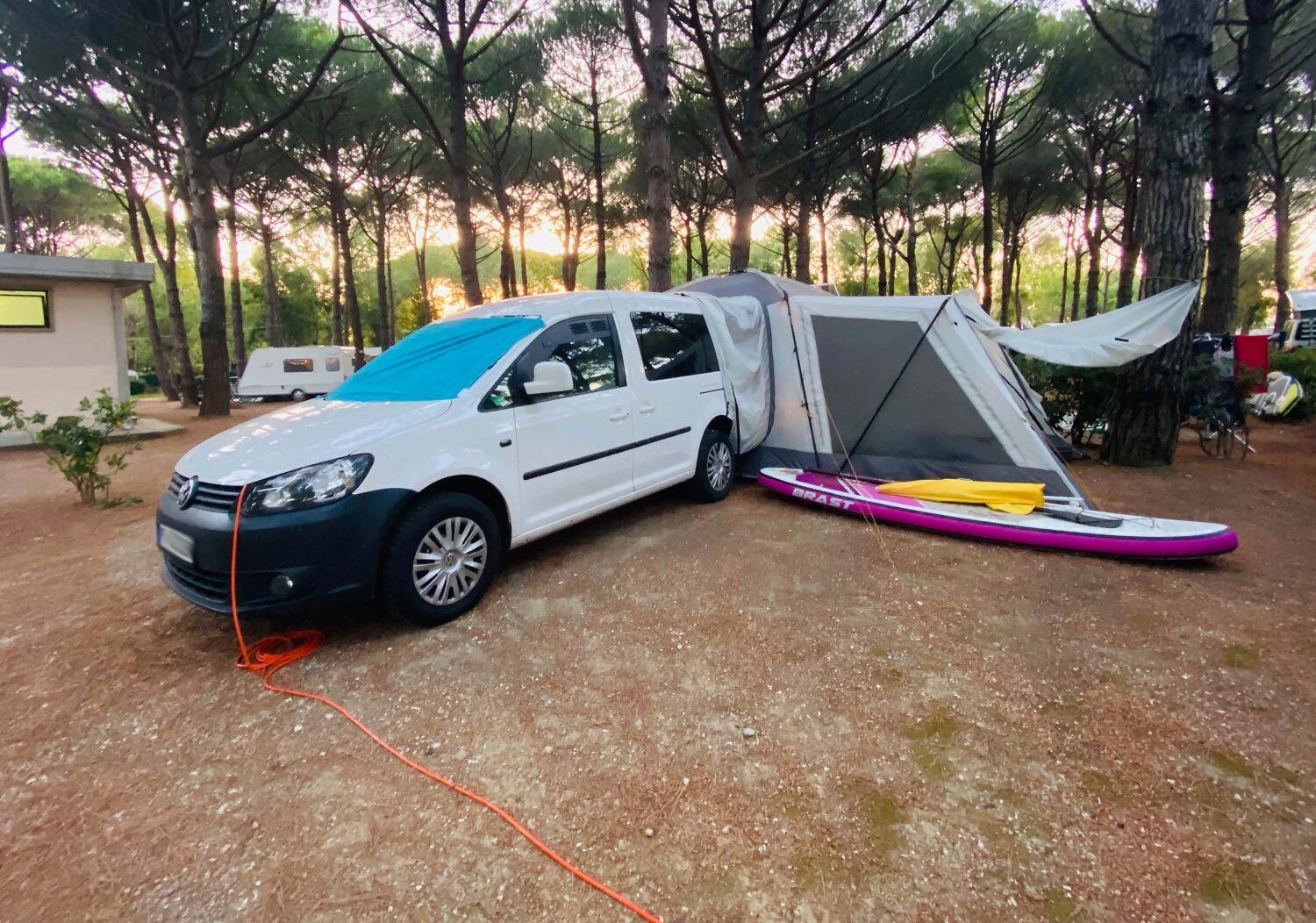 Hallo zusammen Ich biete hier unseren VW Caddy als Teilcamperausbau an. Er steht die meiste Zeit des Jahres unter dem Dach und hat keine sichtbaren Rostansätze. Wir waren damit schon in Rumänien und Italien campen und das war top (siehe Beispielbilder :). Ansonsten lässt er sich durch die herausnehmbare Sitze als Alltagsauto verwenden. - Wechselrichter bis 1000W - 230 Volt Steckdosen - Landstromanschluss - Leseleuchten - Dachklimaanlage Dometic Freshjet 1700 - VW Radio RCD360 mit Carplay/AndroidAuto - Außensteckdose - neue Heckstoßstange - Doorboards im FL-Design - FL-Rückleuchten - USB-Ladebuchsen - schwarzer Innenraum + Filzung - Sitze hinten herausnehmbar - inkl. 2x Funkschlüssel Kein Wartungsstau: - Neuer Zahnriemen/Kühlwasserpumpe - Neue Bremsen hinten - Neuer Auspuff-Endtopf - Neue Stoßdämpfer - Neue Batterie Baujahr 2011, TÜV bis 07/24 150.000 km Auto ist aktuell abgemeldet und steht sicher in seiner Garage. Verkaufe von privat.
