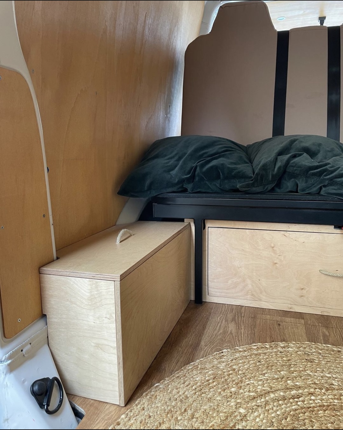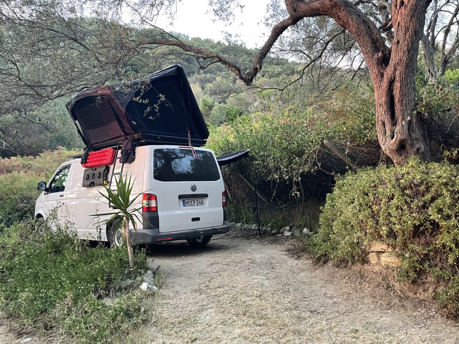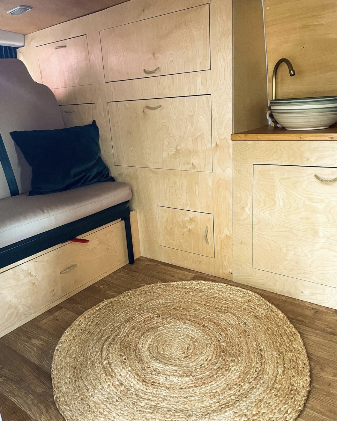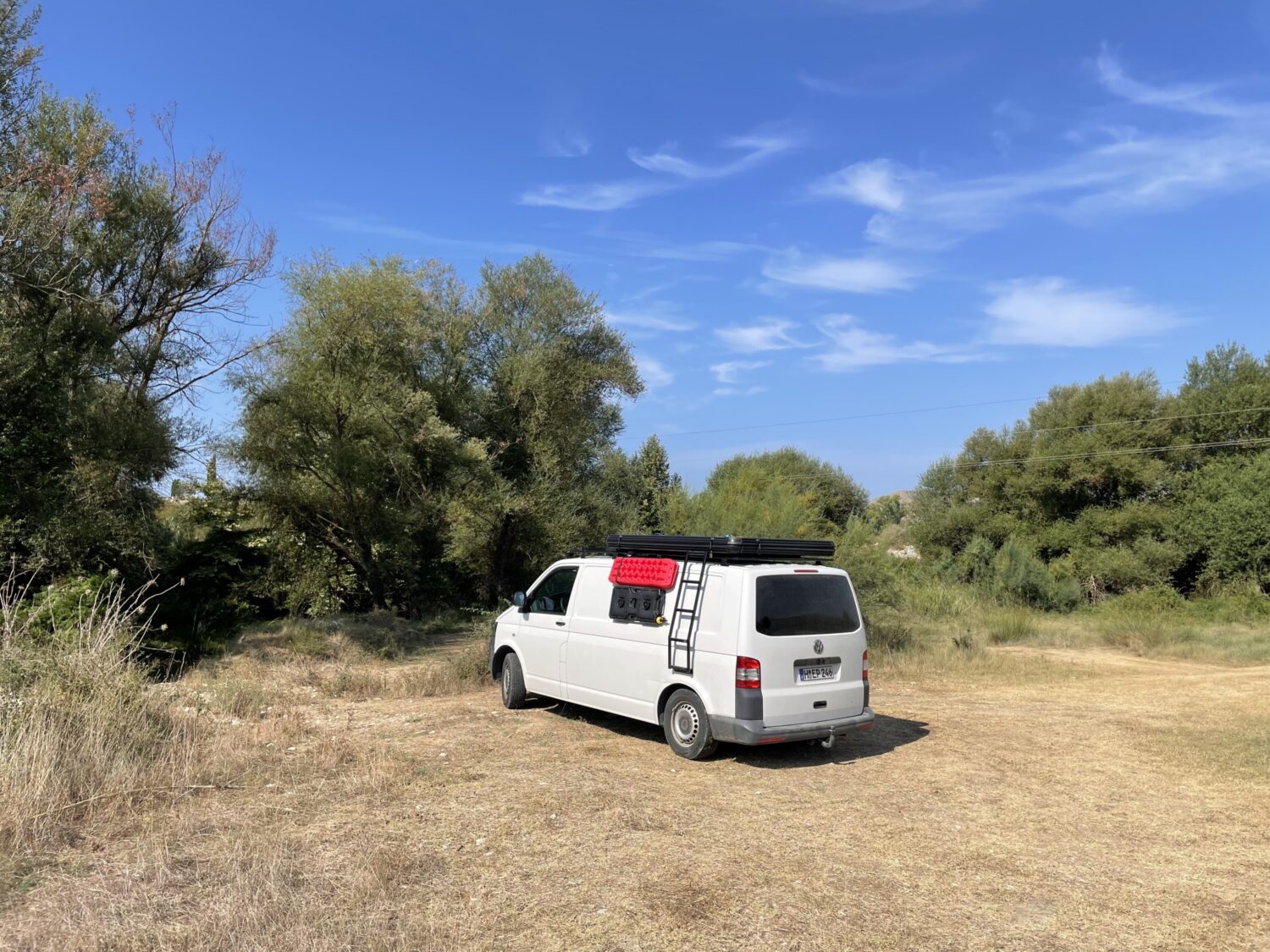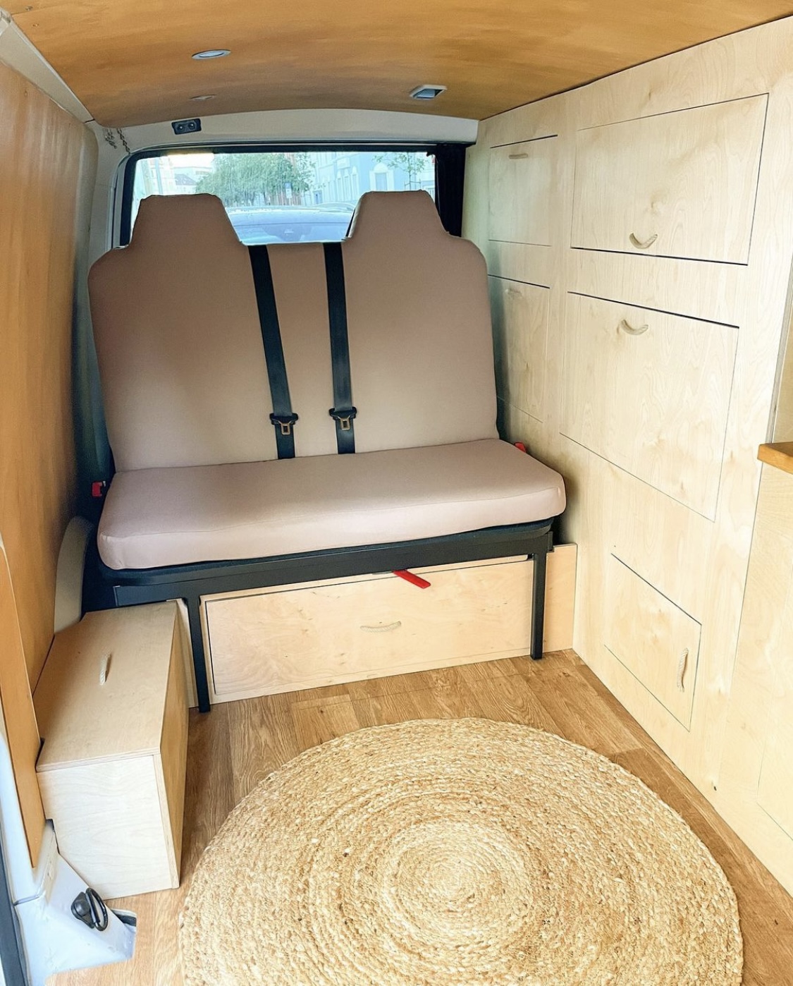 VW T5 Camper mit vier Schlafplätzen und bis zu 5 Sitzplätzen, selbst ausgebaut