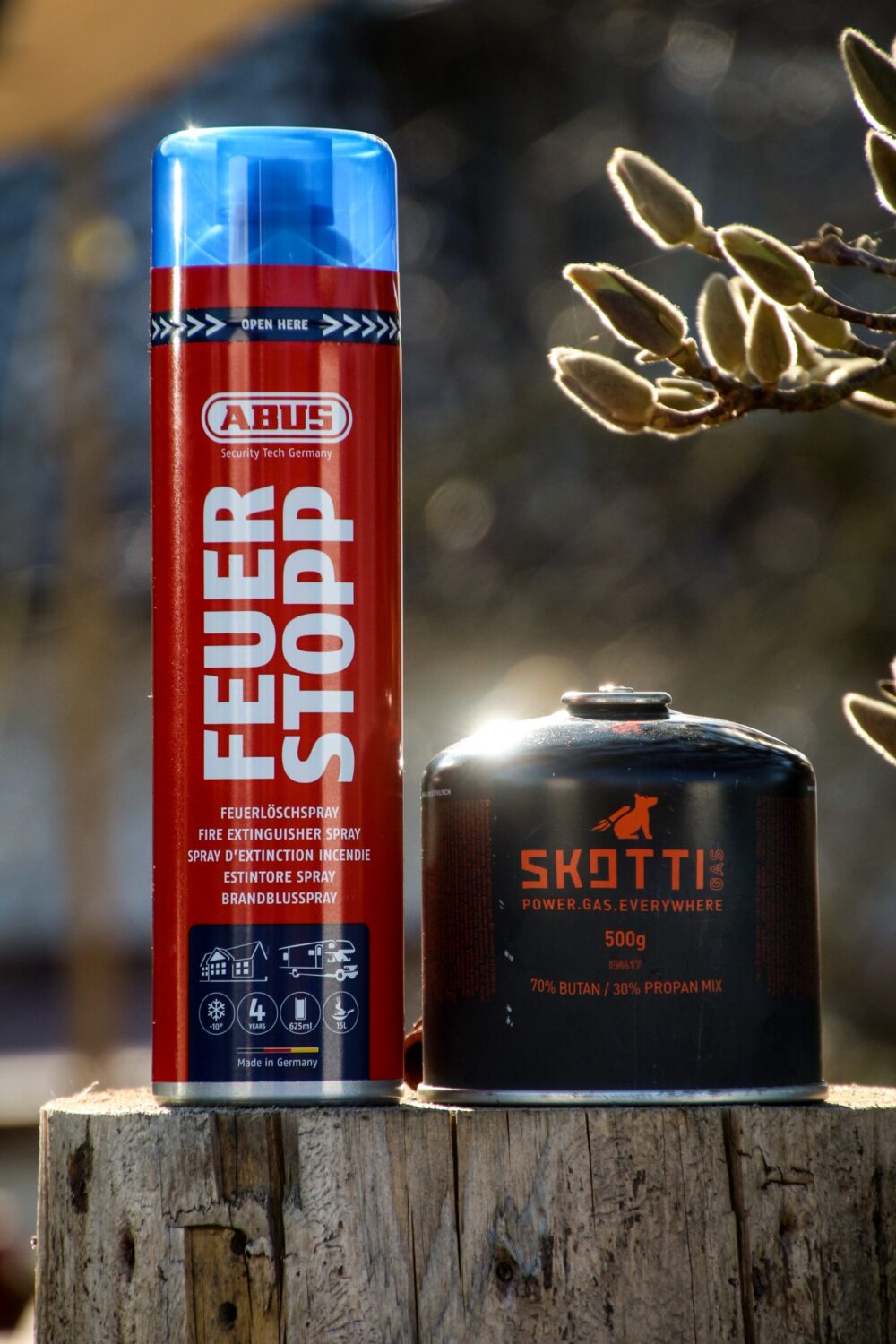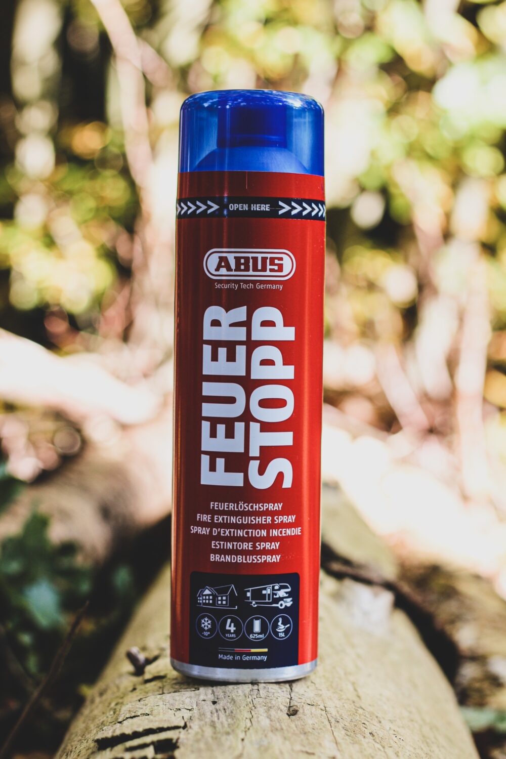 Der eine oder andere von euch hat sicher schon einen Feuerlöscher im Van. Wenn nicht, ist das vielleicht eine sehr gute Alternative. Bis vor kurzem hatte ich ebenfalls kein Löschmaterial an Board, bis ich auf Instagram einen komplett ausgebrannten VW T5 gesehen haben. Grund dafür: Brand an der Heckküche der so stark war, dass das Auto daneben ebenfalls fing. Haben ist also definitiv immer besser als Brauchen. Und genau aus diesem Grund fahren wir keine Tour mehr ohne Feuerlöschspray!