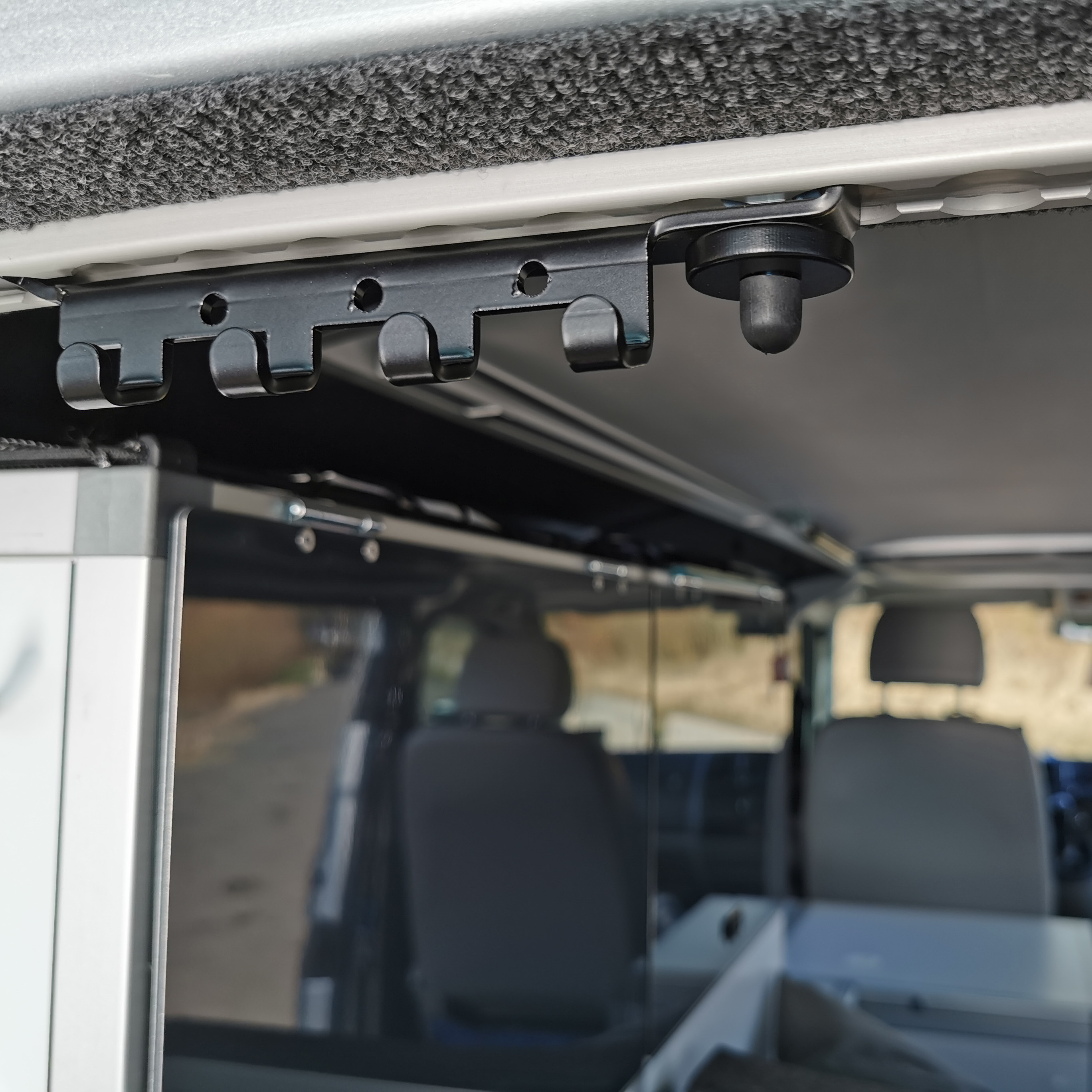 Aber die Art der Befestigung ist doch recht simpel, genial und haltbar. Also warum nicht eine extra kleine Airlineschiene mit nützlichen Befestigungsteilen im Innenraum verwenden. Das Ganze also „salonfähig“ machen.
